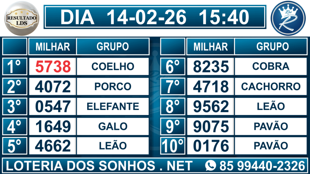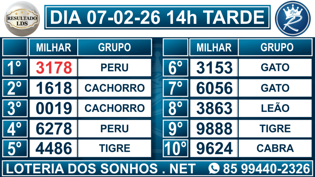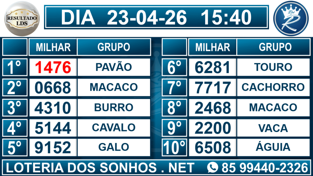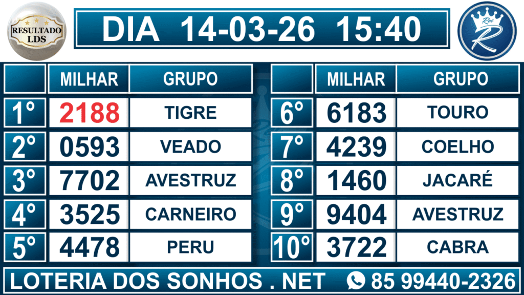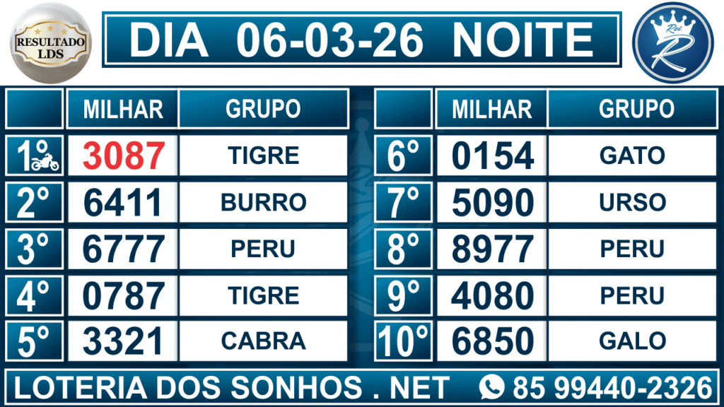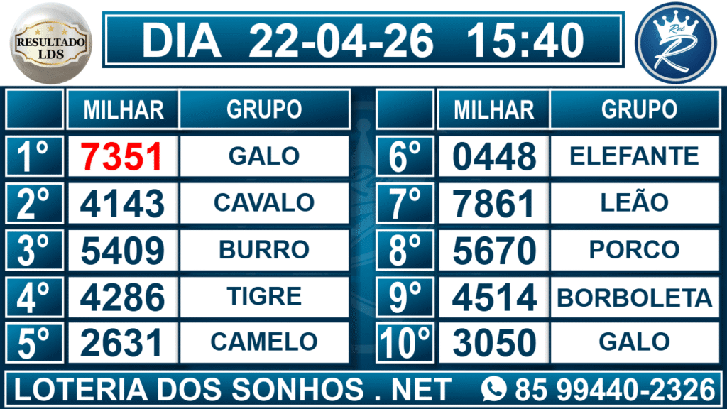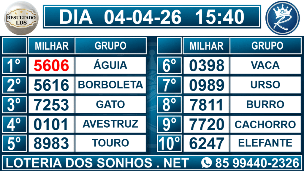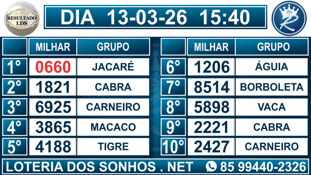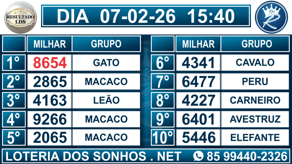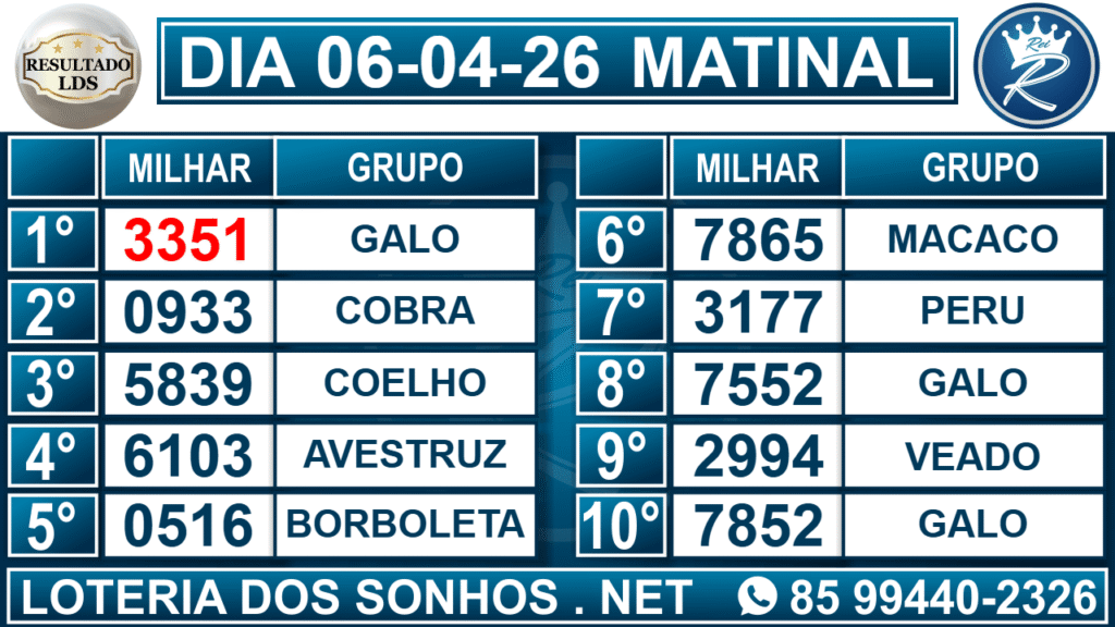 Veja aqui todos os resultados sempre atualizados, o nosso site é o primeiro a postar o resultado da Loteria dos Sonhos.