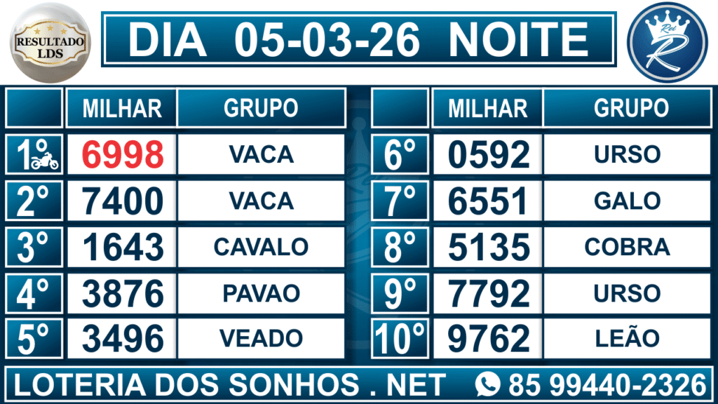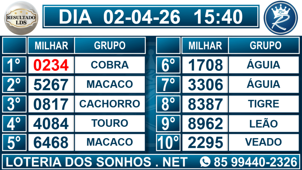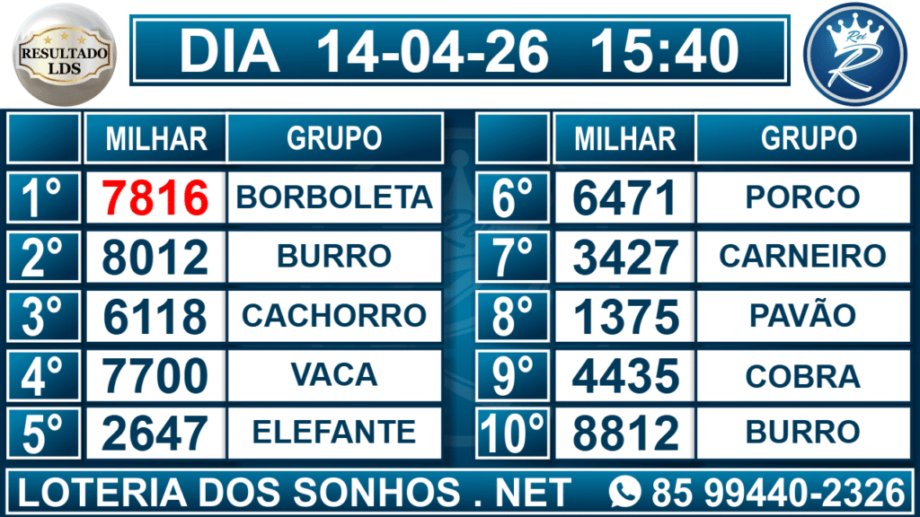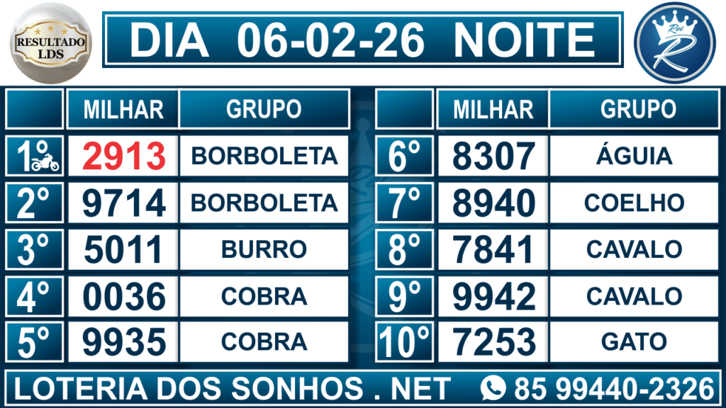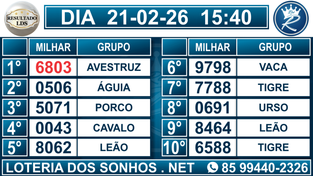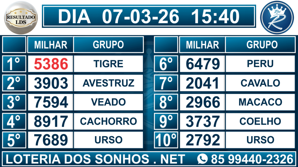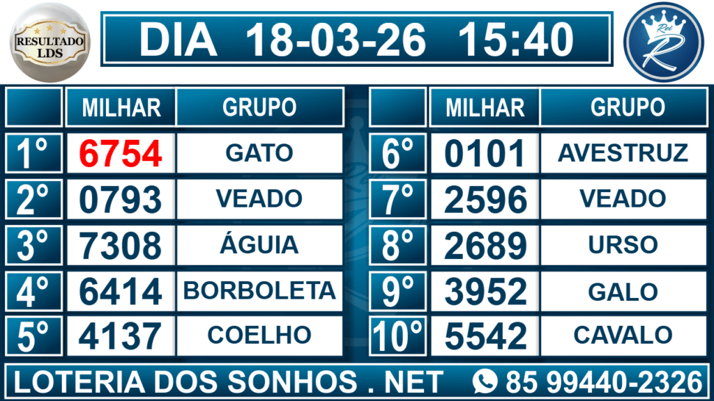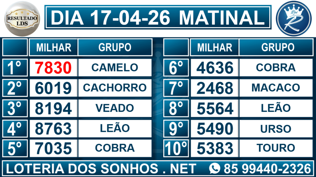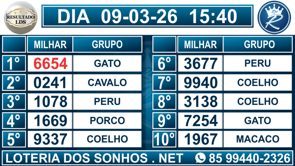 Veja aqui todos os resultados sempre atualizados, o nosso site é o primeiro a postar o resultado da Loteria dos Sonhos.