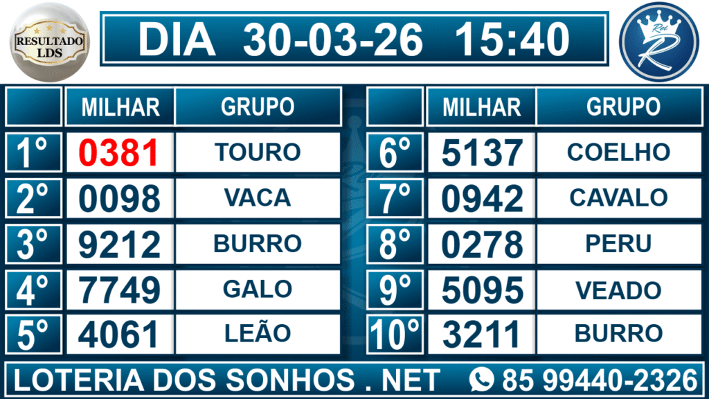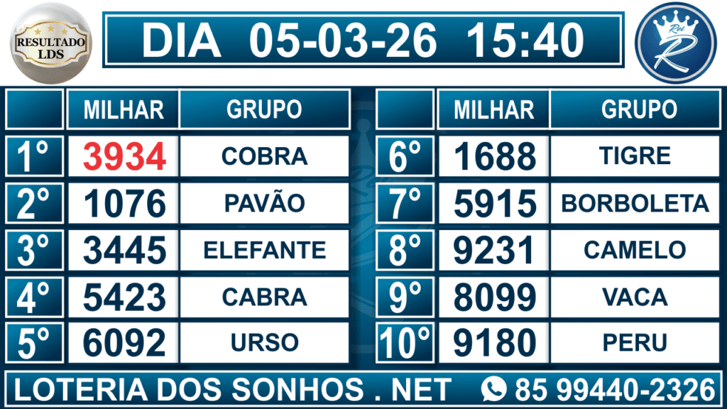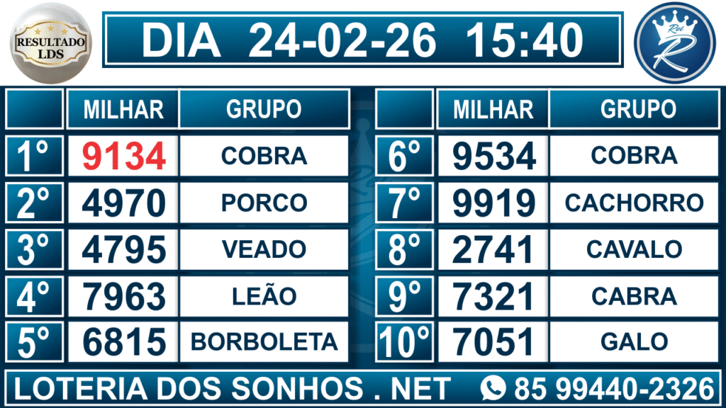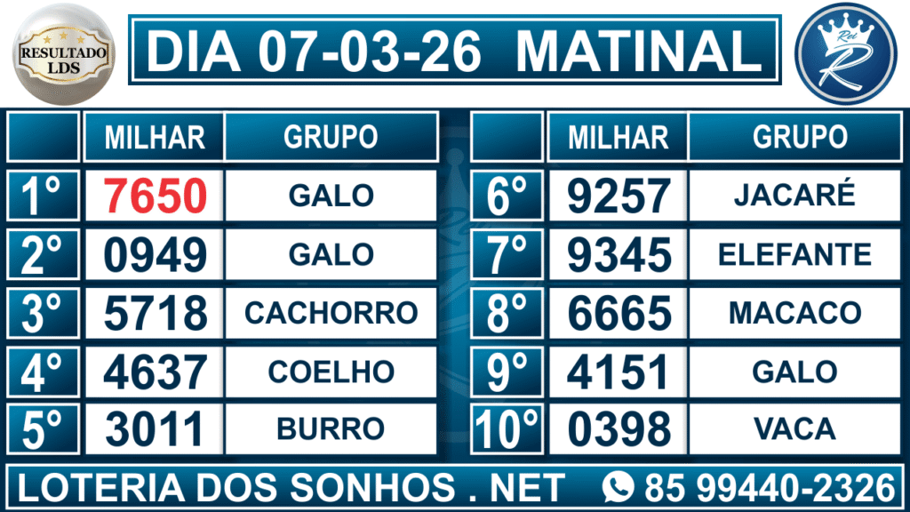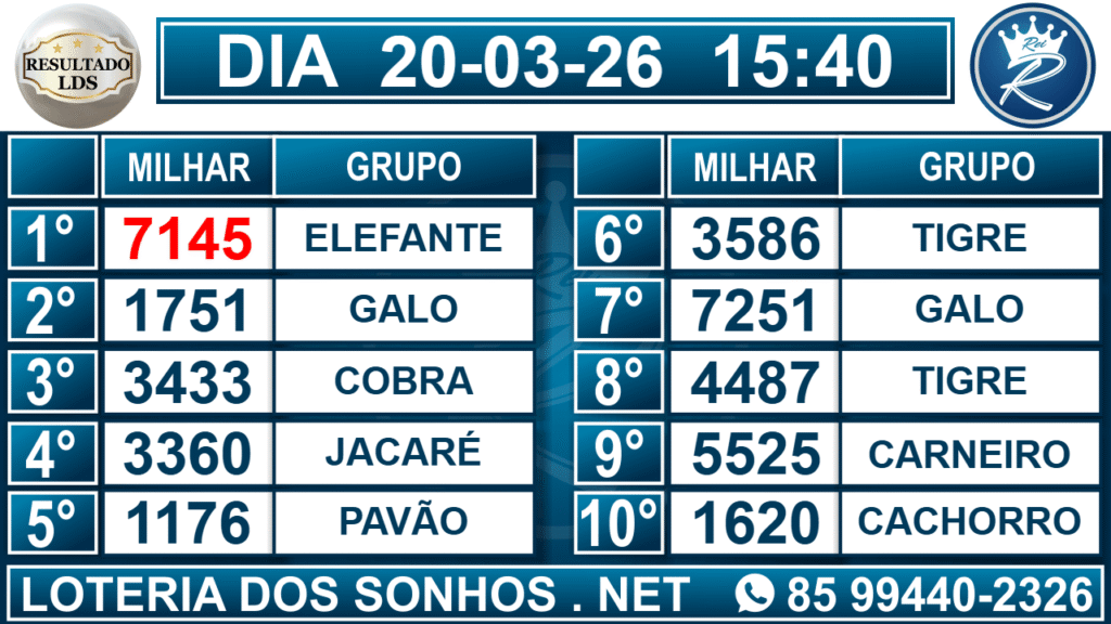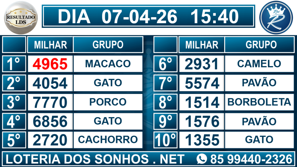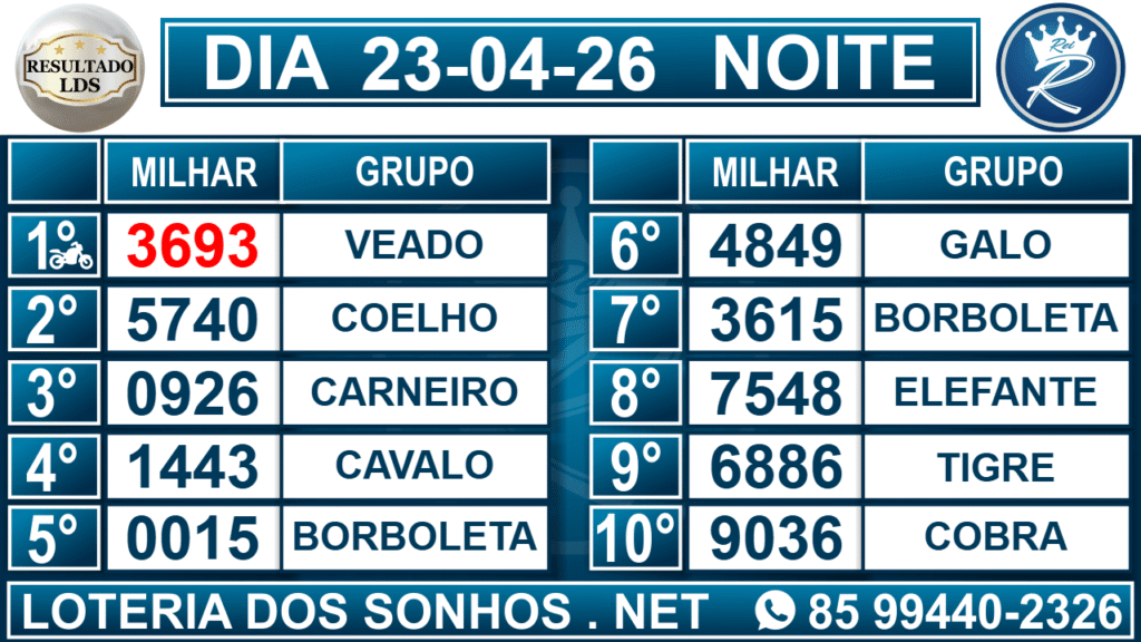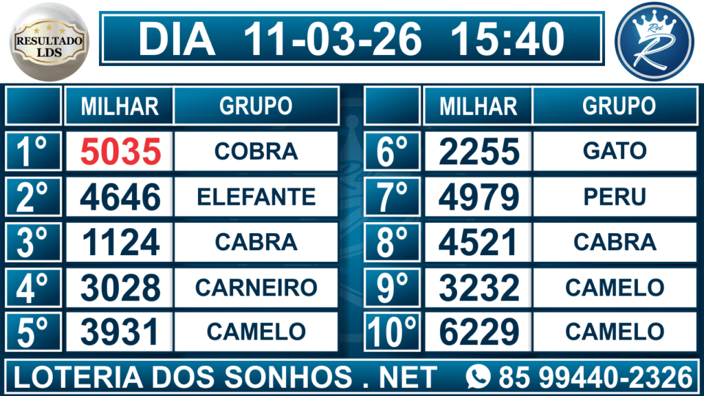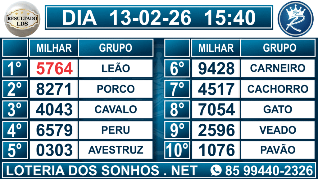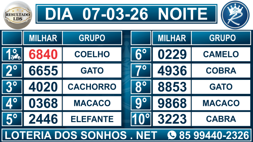 Veja aqui todos os resultados sempre atualizados, o nosso site é o primeiro a postar o resultado da Loteria dos Sonhos.