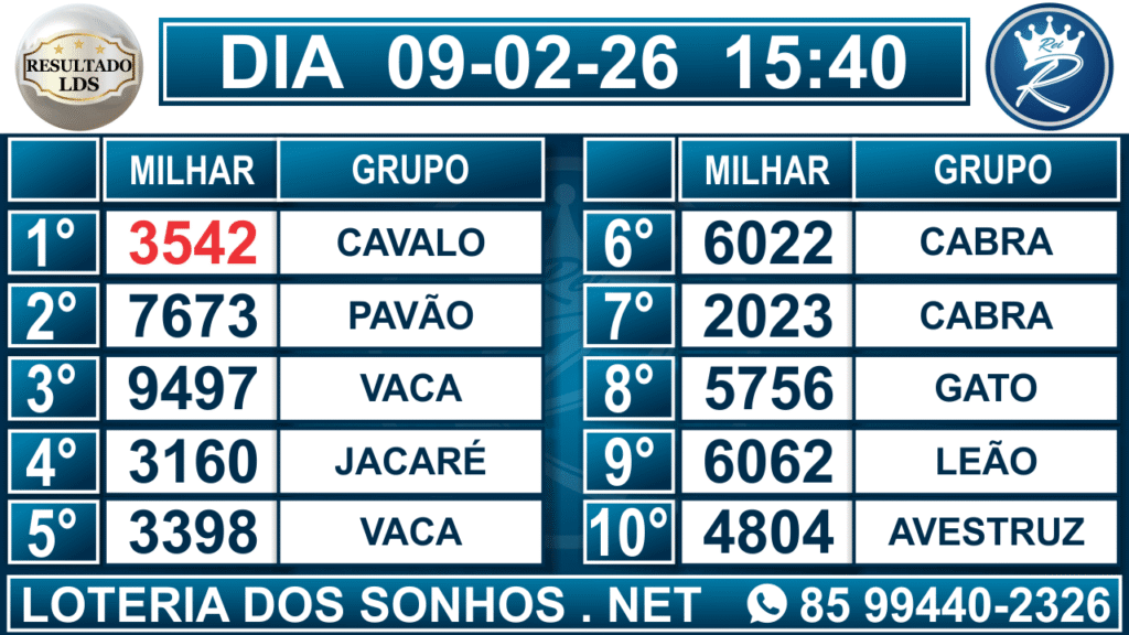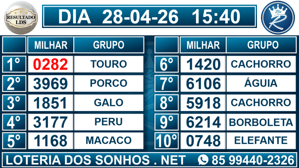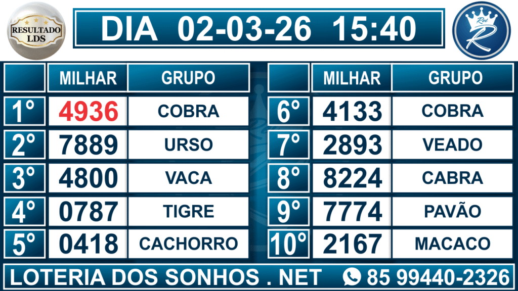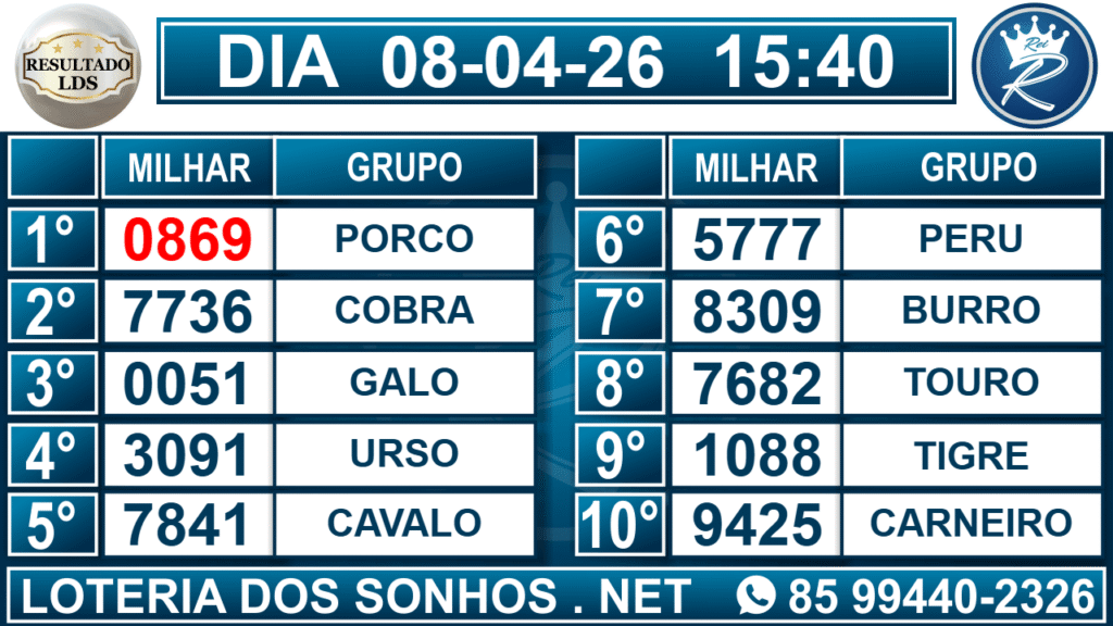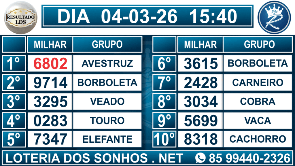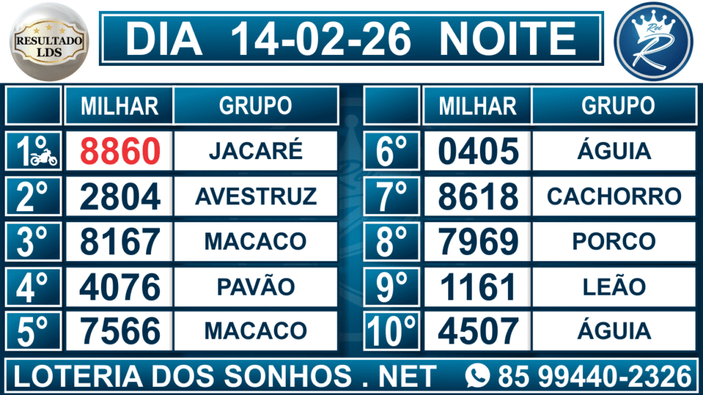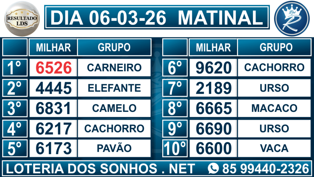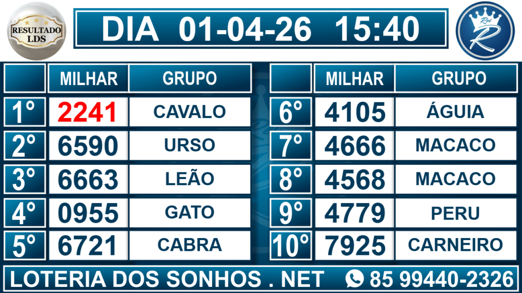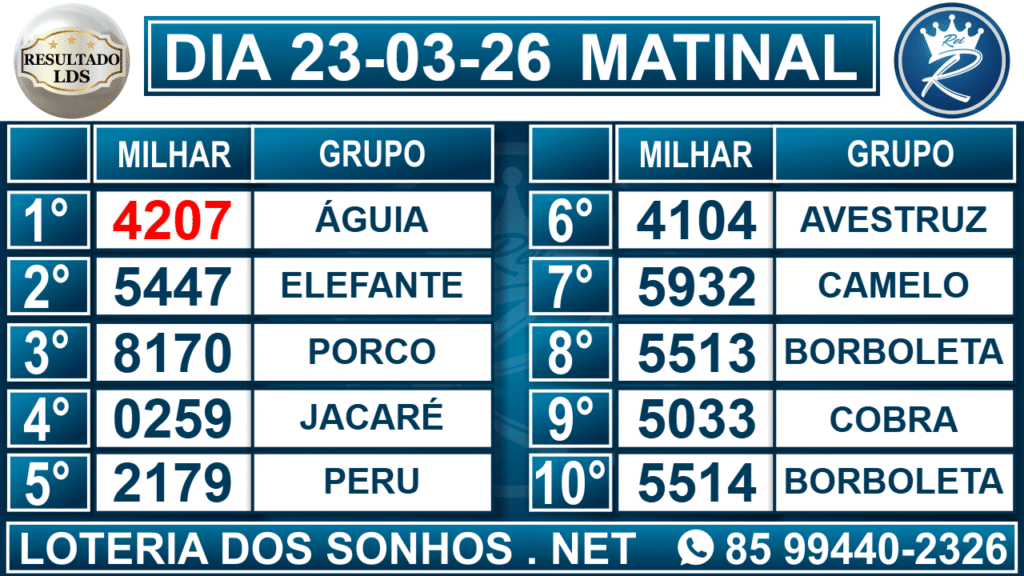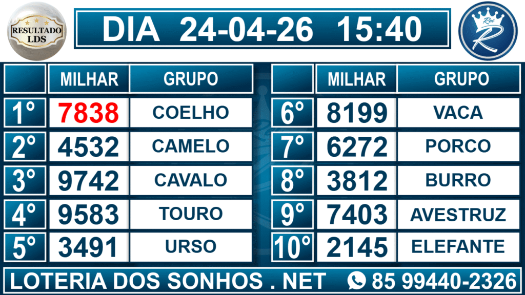 Veja aqui todos os resultados sempre atualizados, o nosso site é o primeiro a postar o resultado da Loteria dos Sonhos.