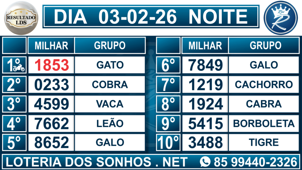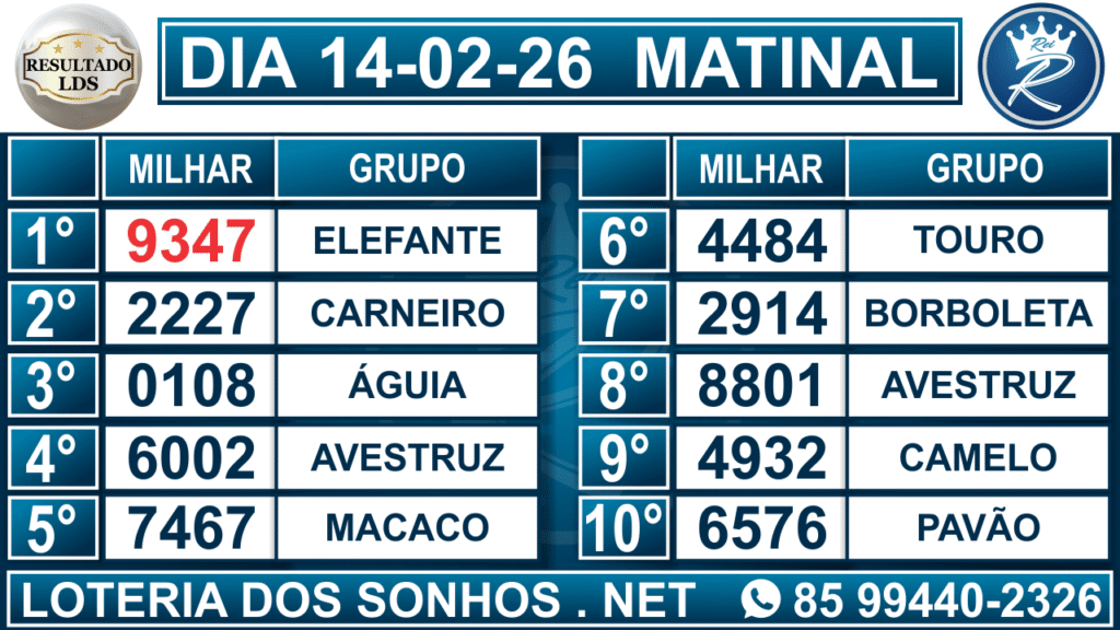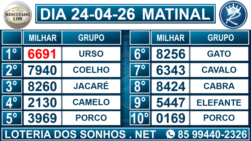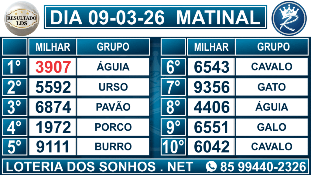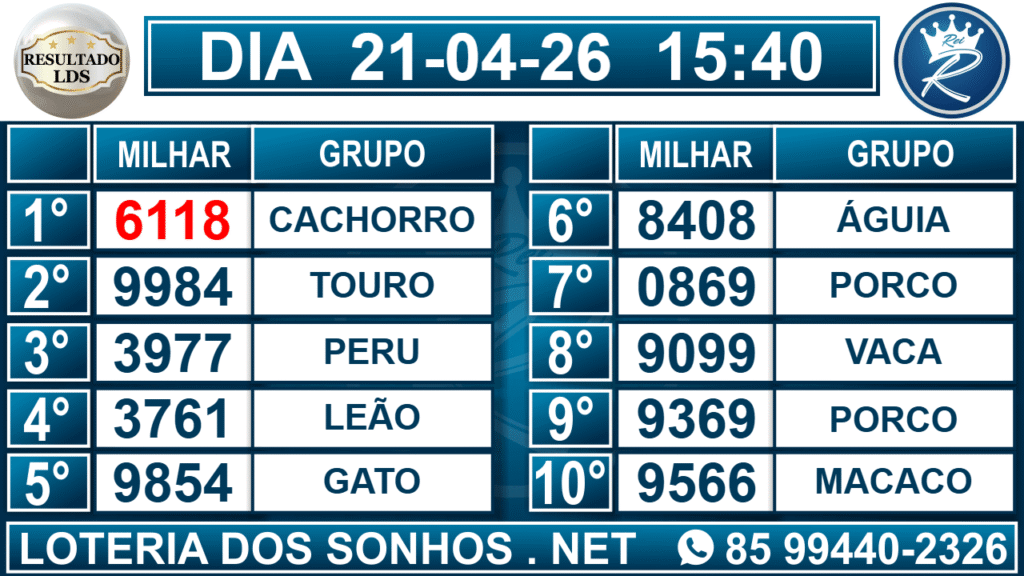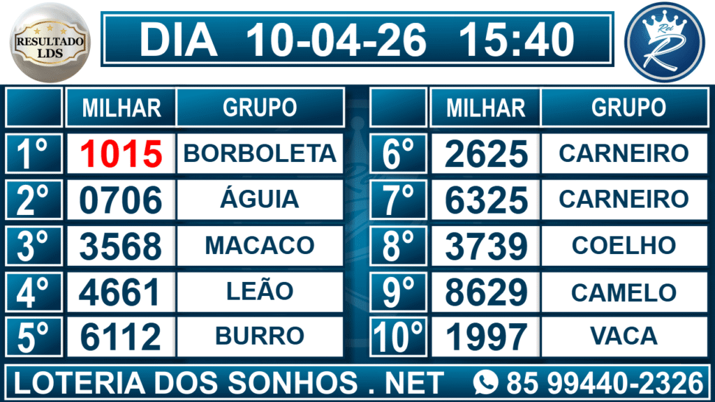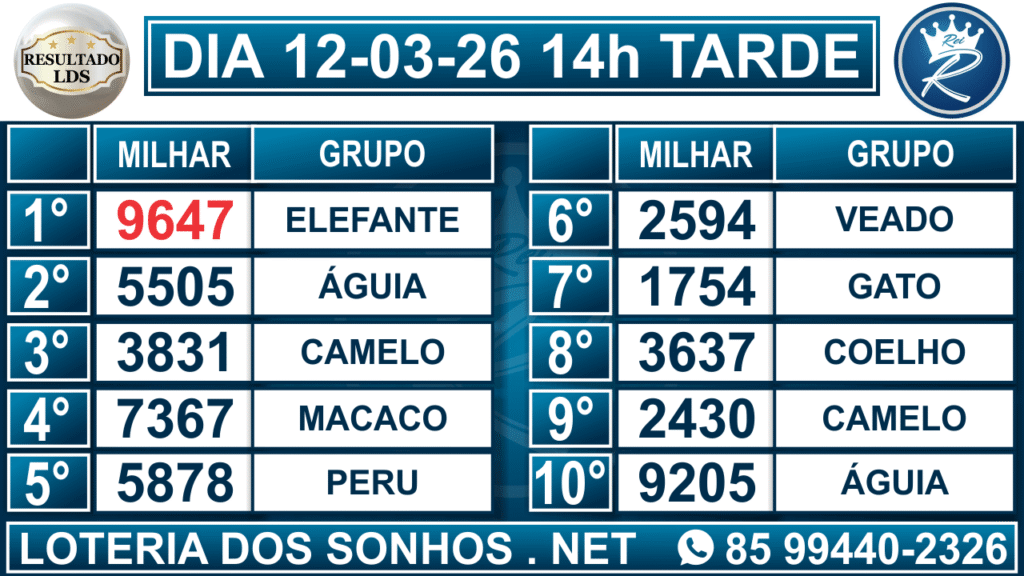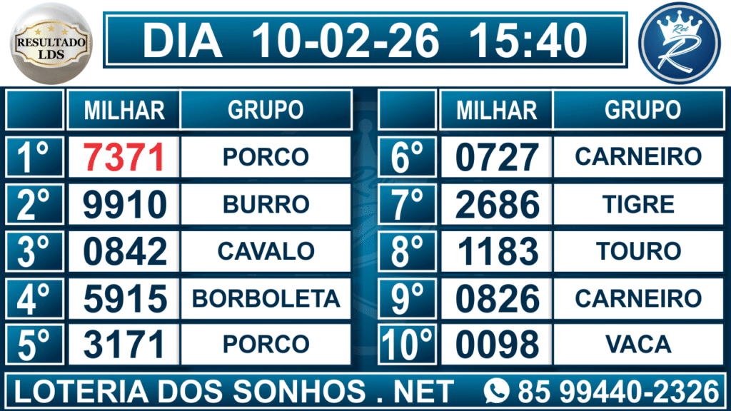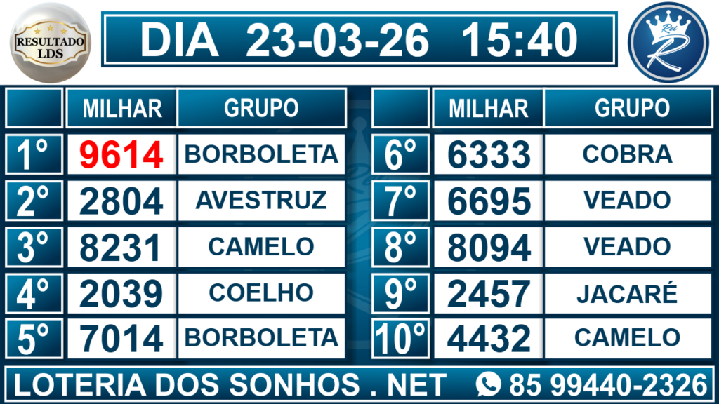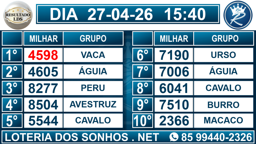 Veja aqui todos os resultados sempre atualizados, o nosso site é o primeiro a postar o resultado da Loteria dos Sonhos.