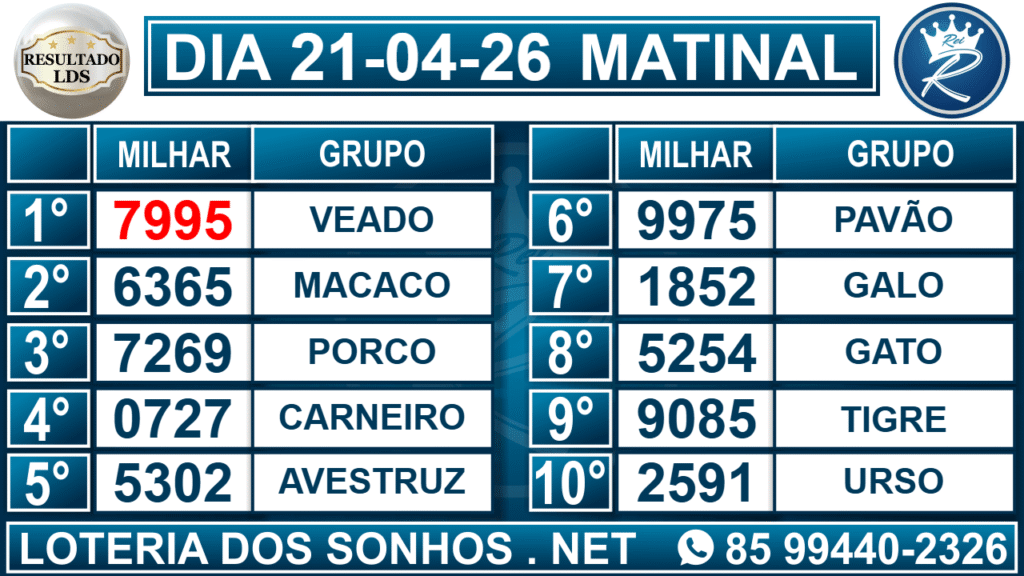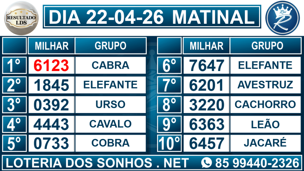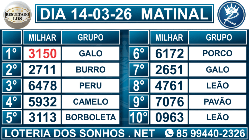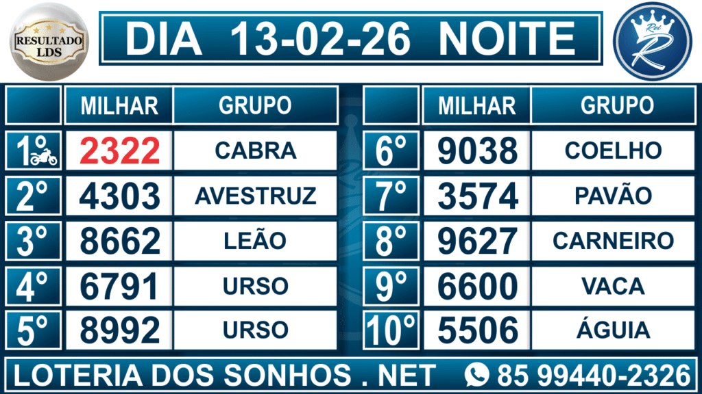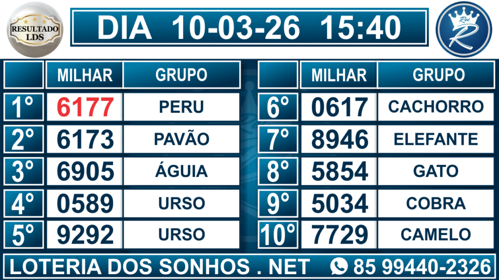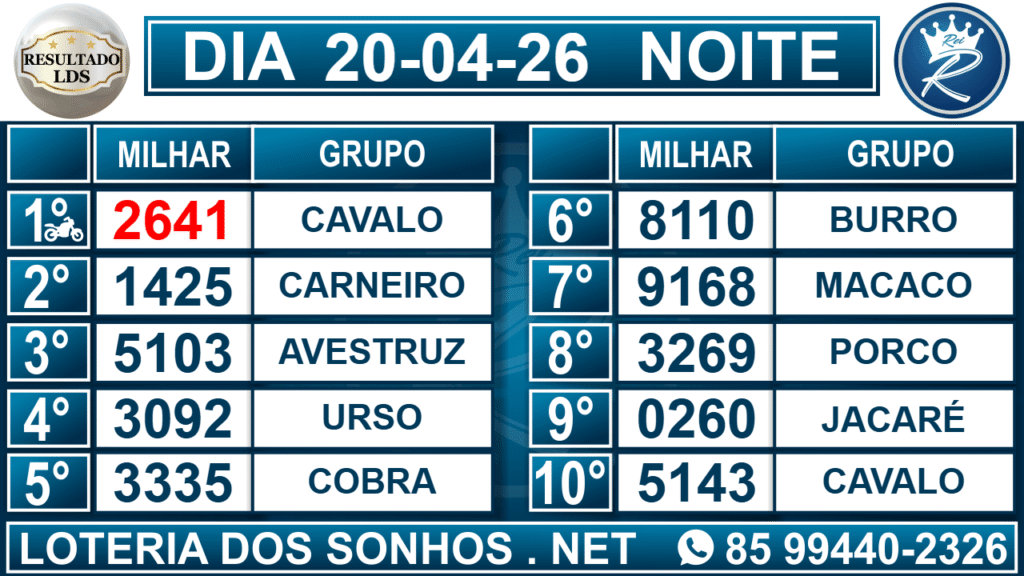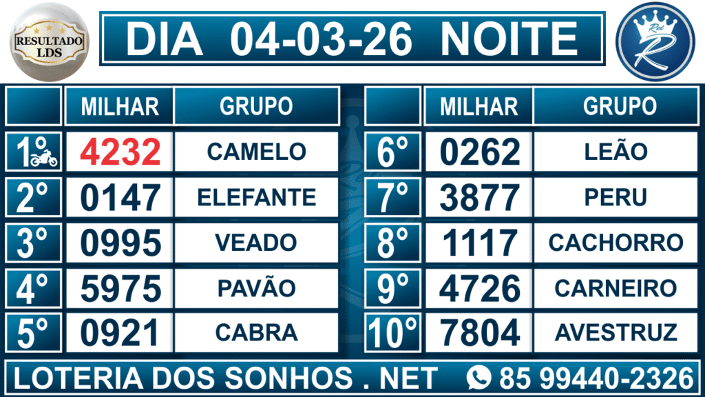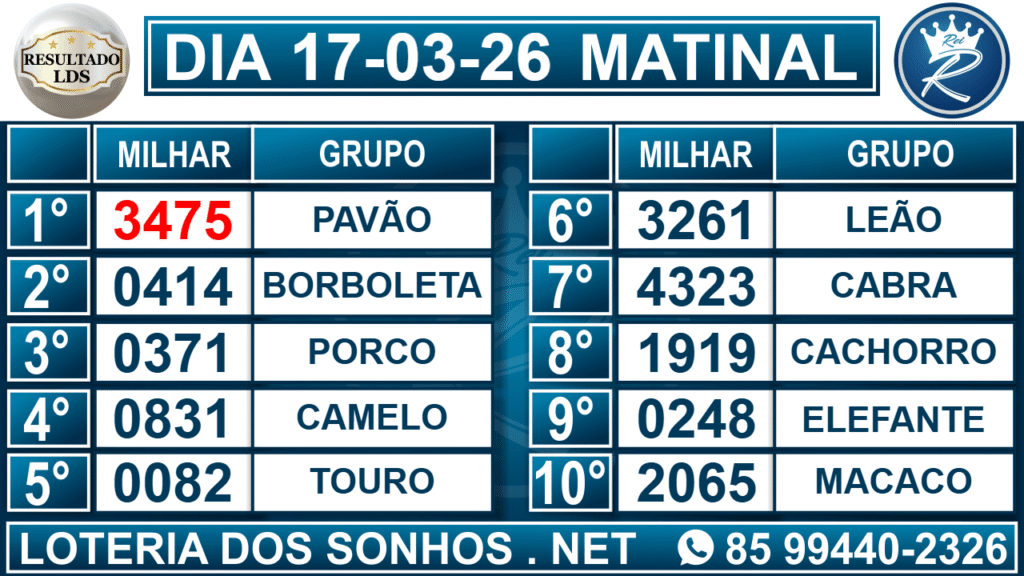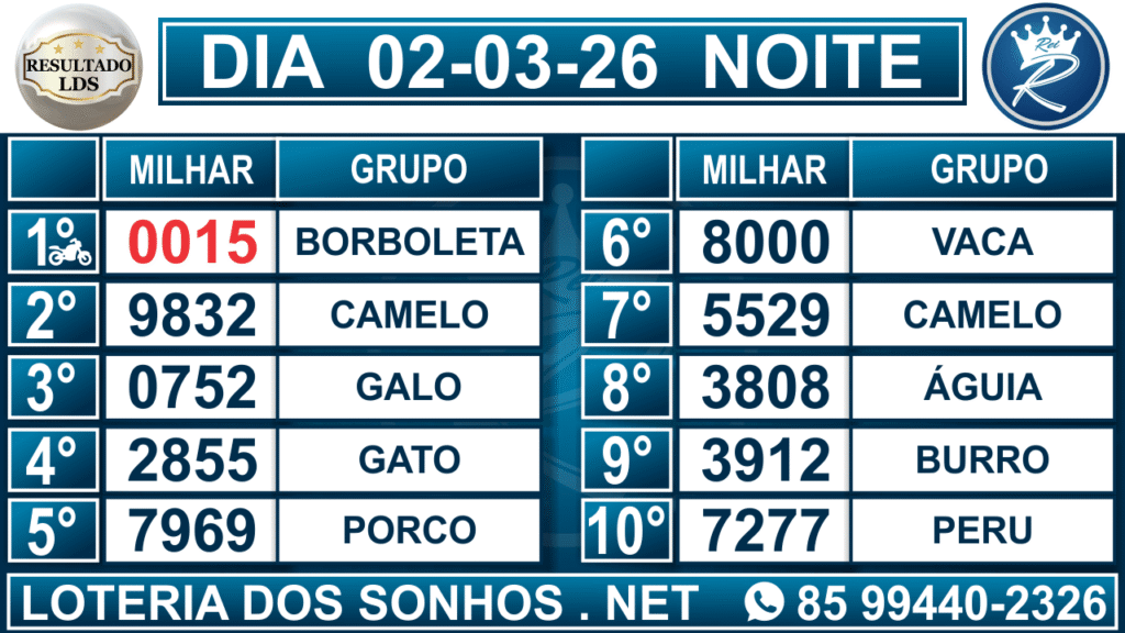 Veja aqui todos os resultados sempre atualizados, o nosso site é o primeiro a postar o resultado da Loteria dos Sonhos.