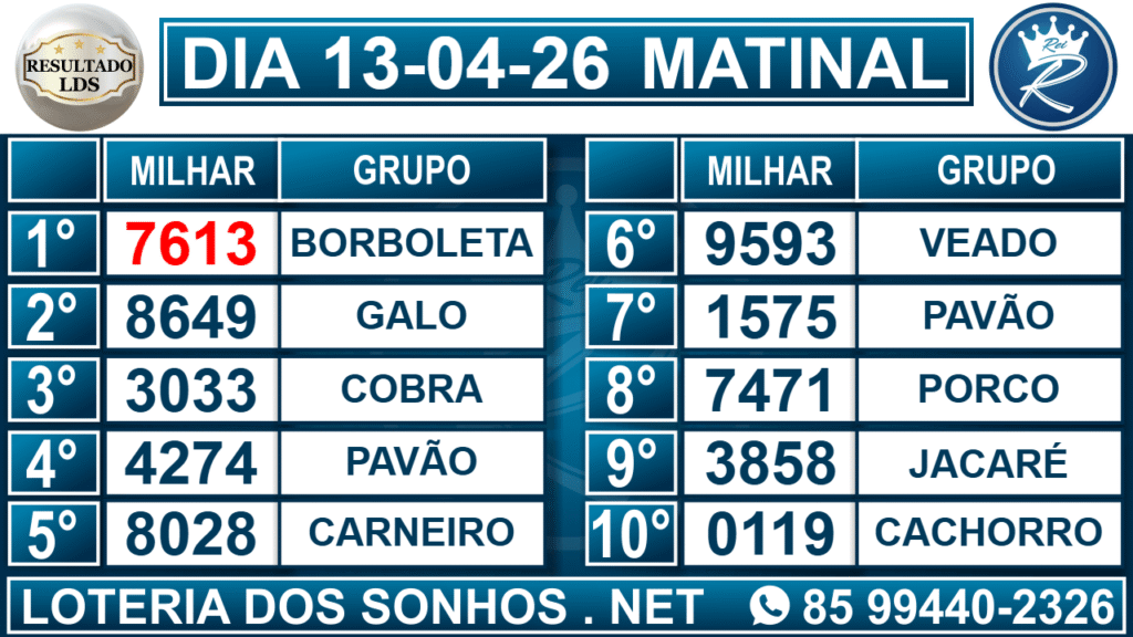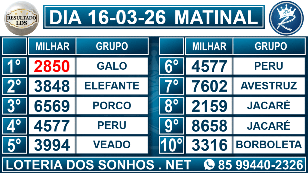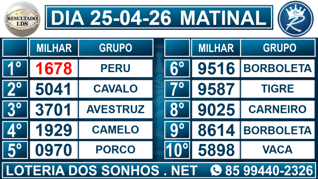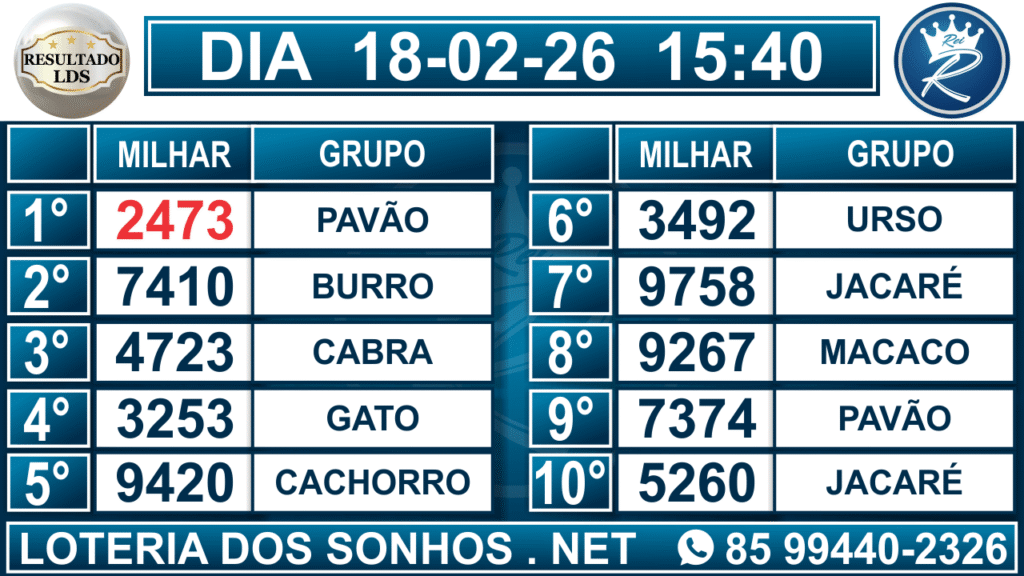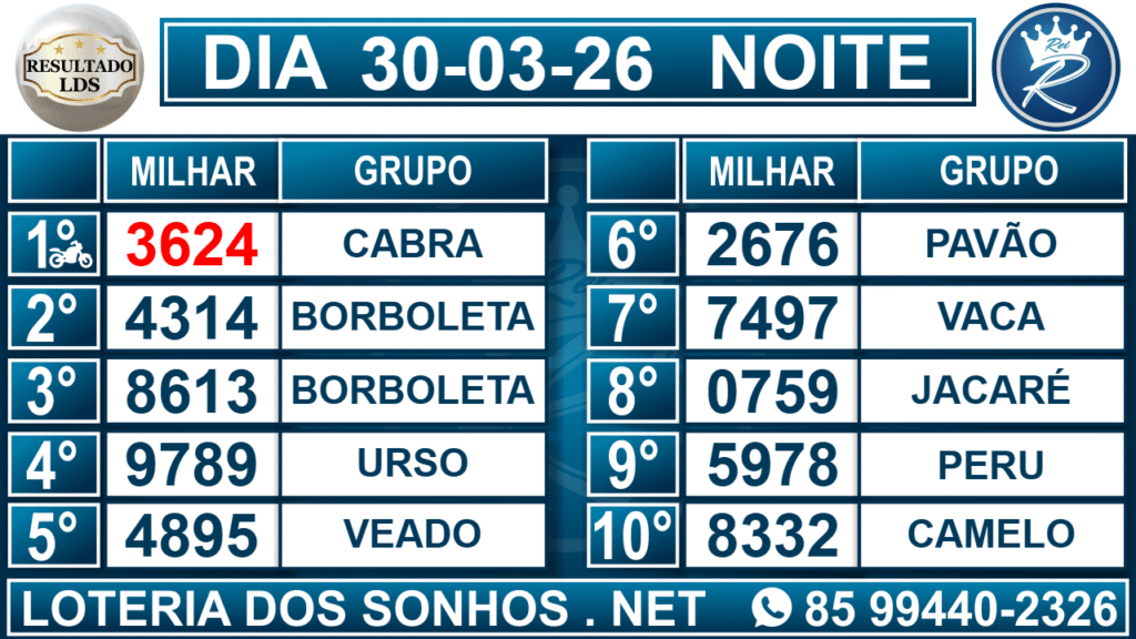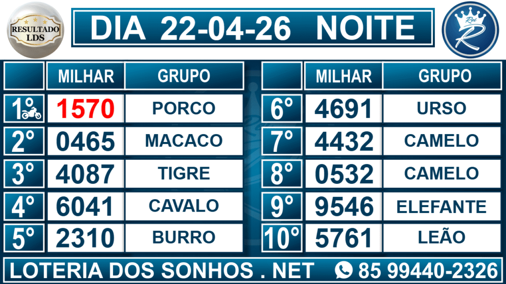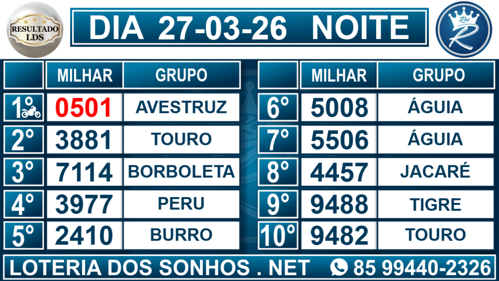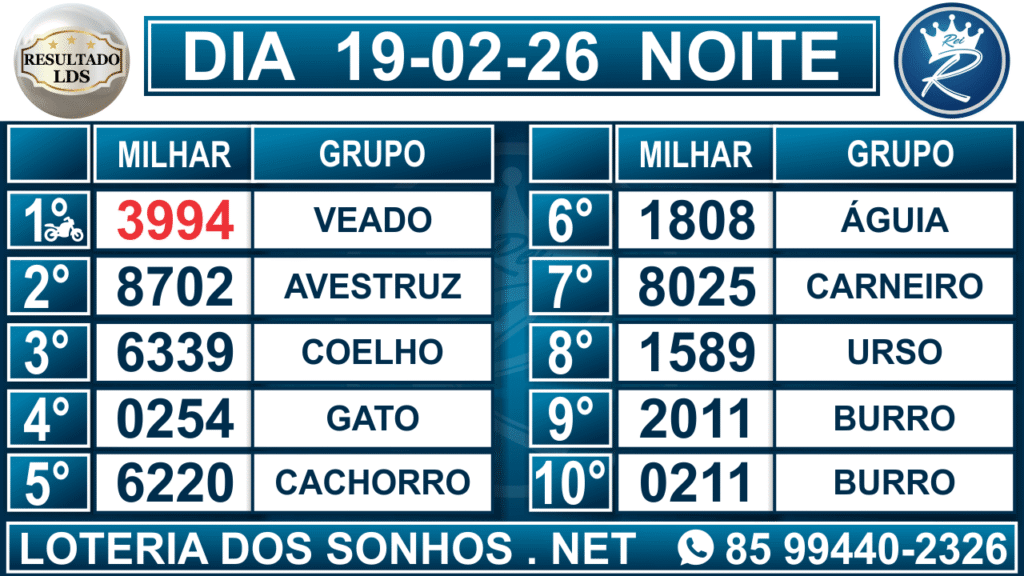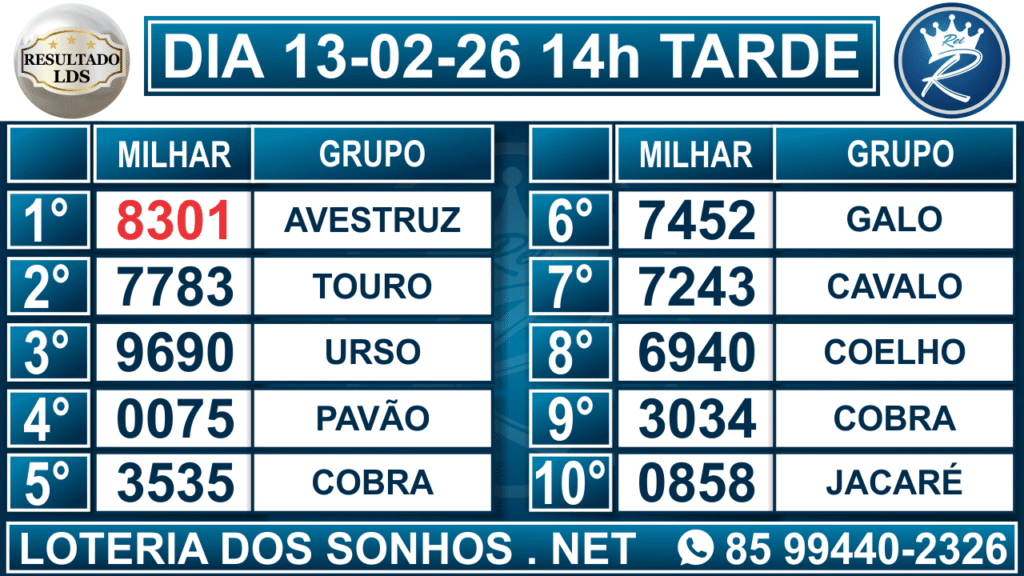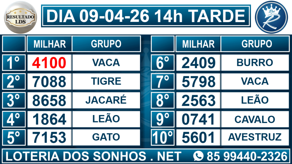 Veja aqui todos os resultados sempre atualizados, o nosso site é o primeiro a postar o resultado da Loteria dos Sonhos.
