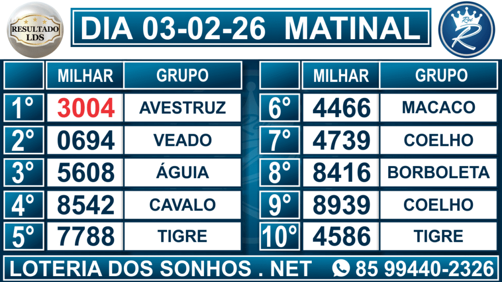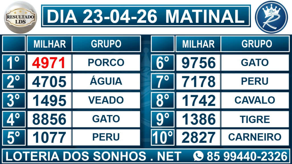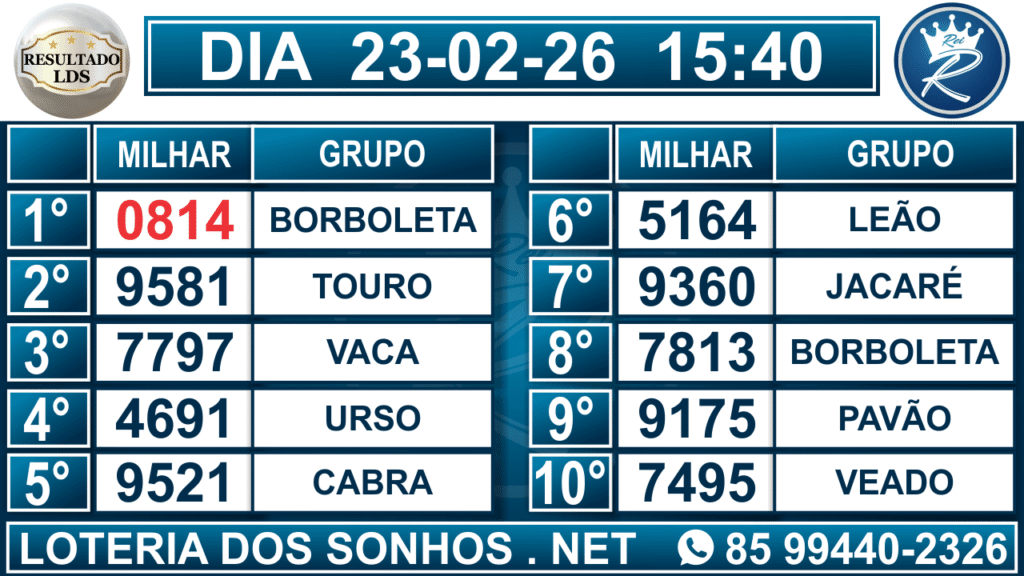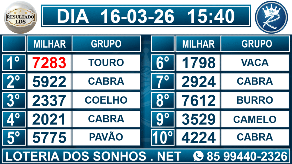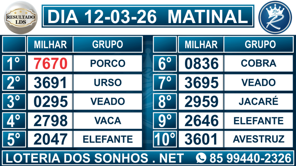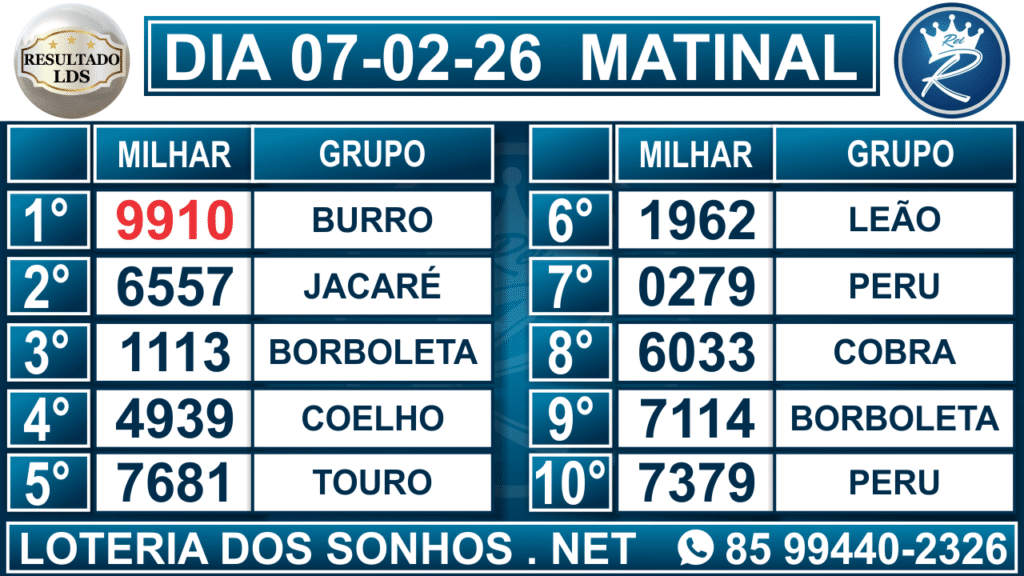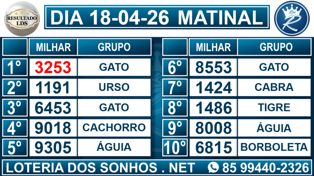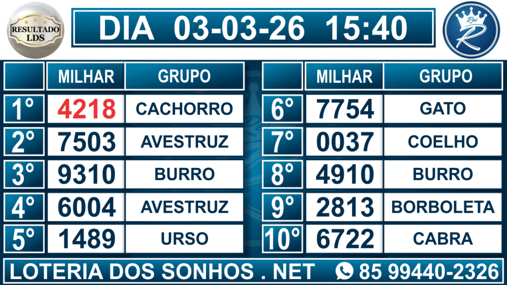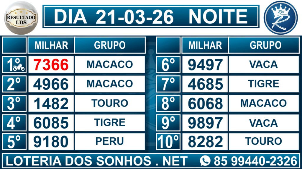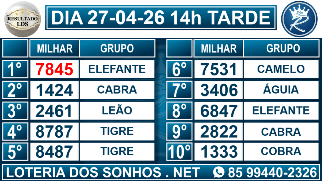 Veja aqui todos os resultados sempre atualizados, o nosso site é o primeiro a postar o resultado da Loteria dos Sonhos.