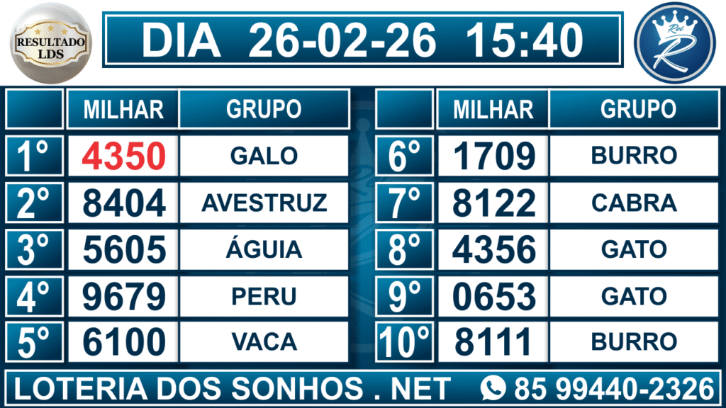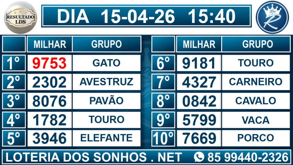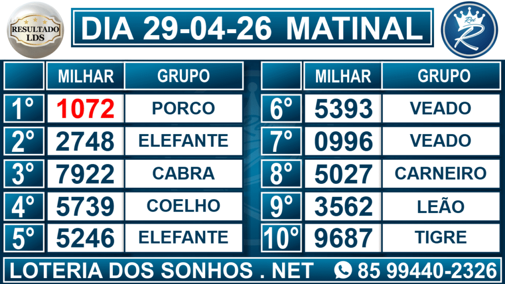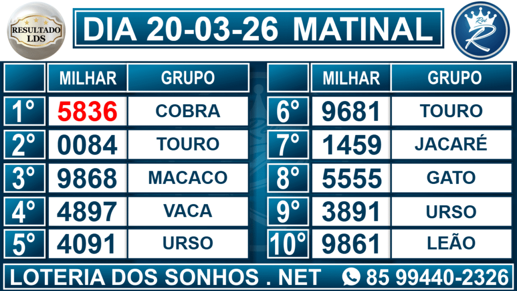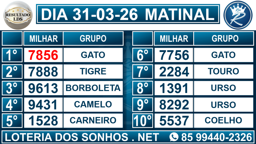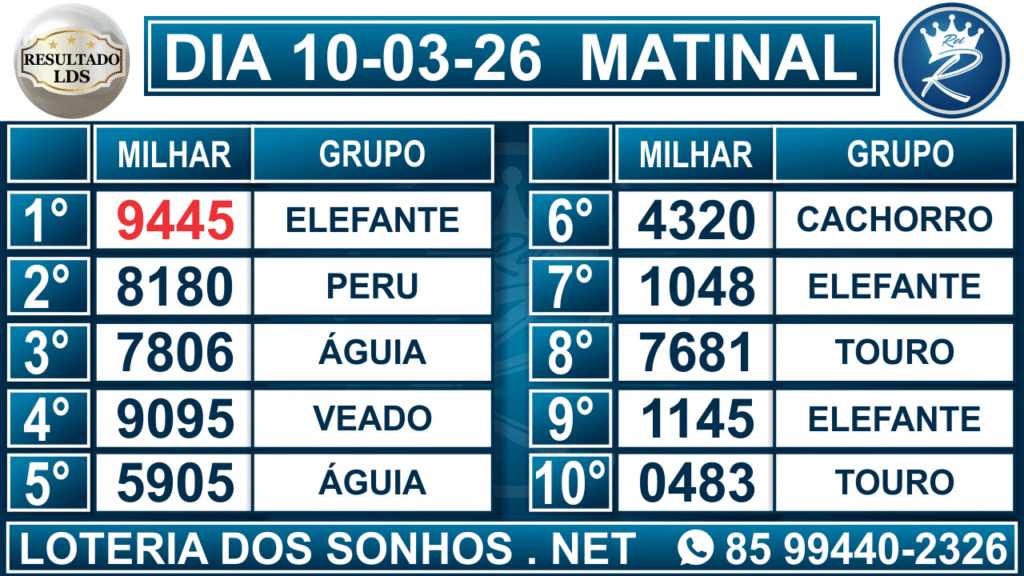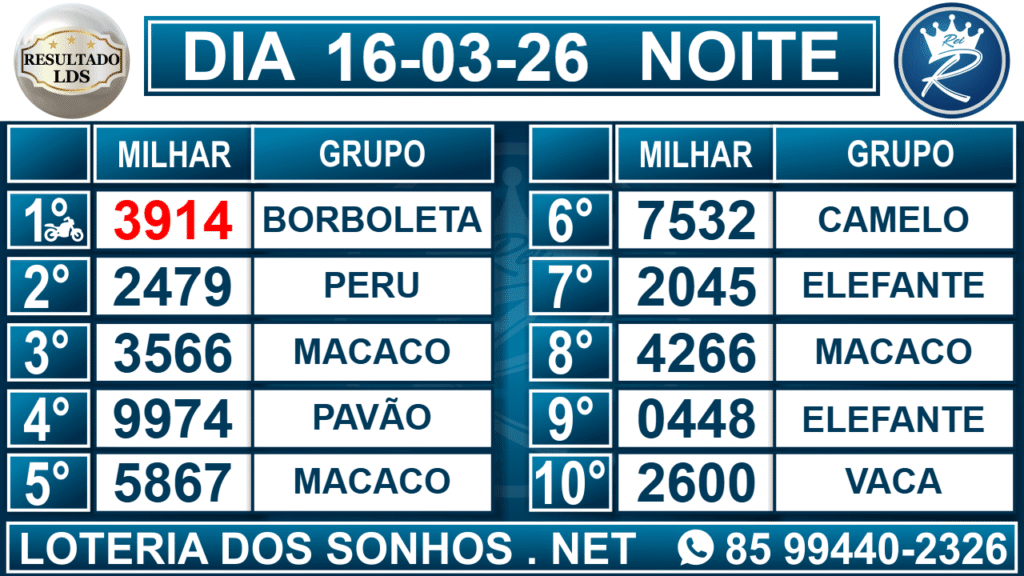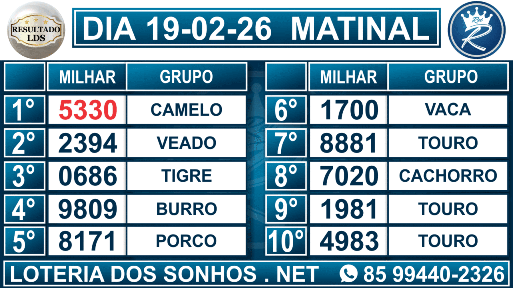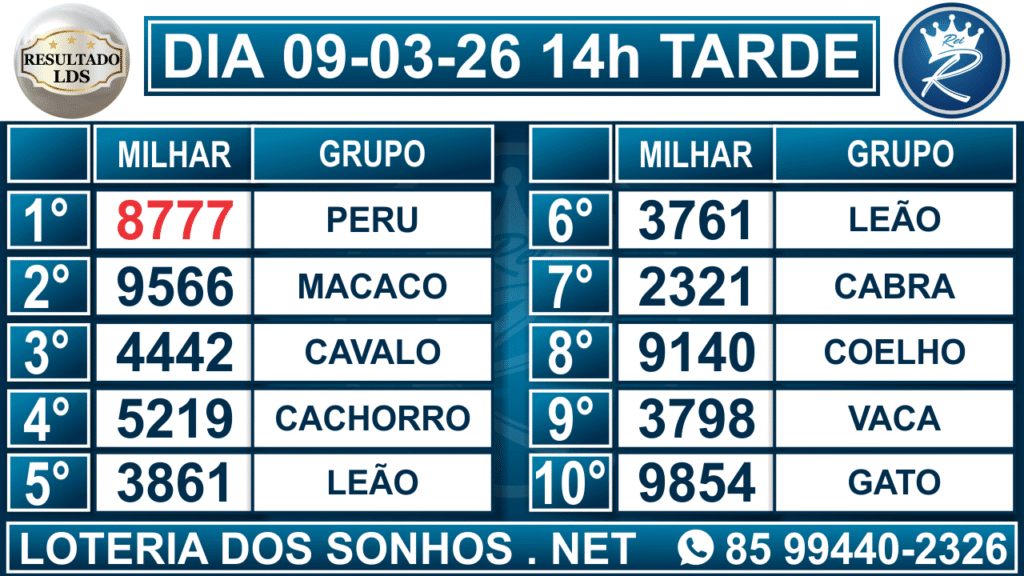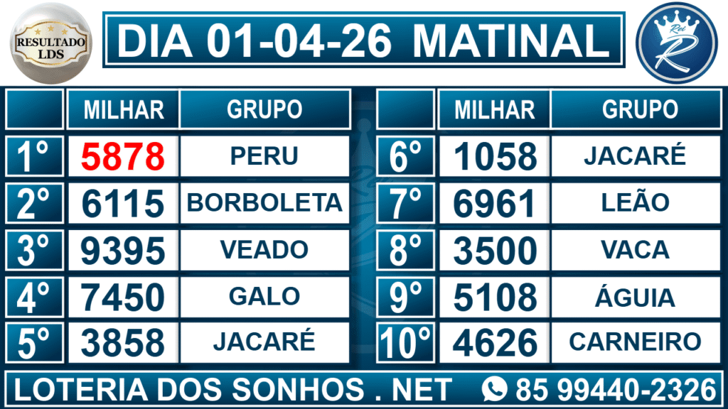 Veja aqui todos os resultados sempre atualizados, o nosso site é o primeiro a postar o resultado da Loteria dos Sonhos.