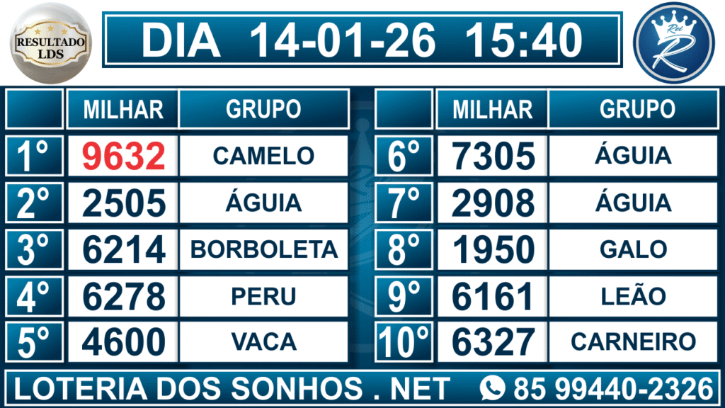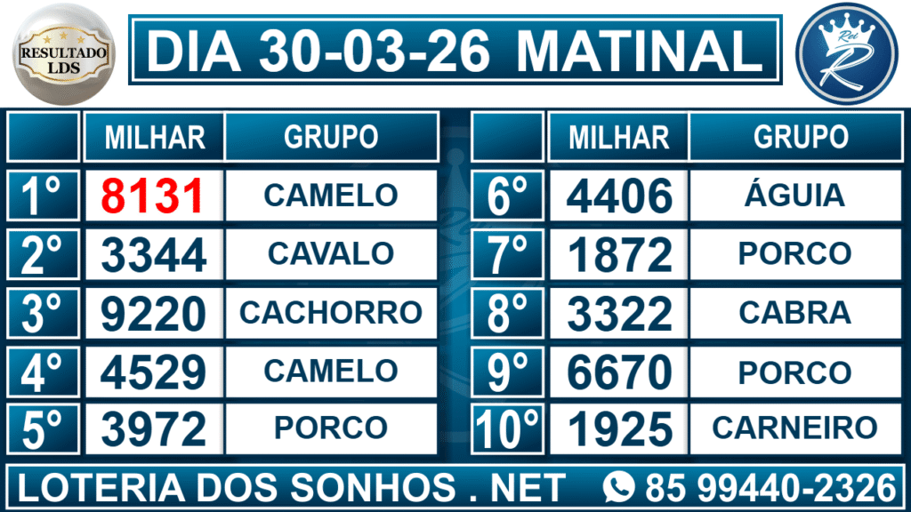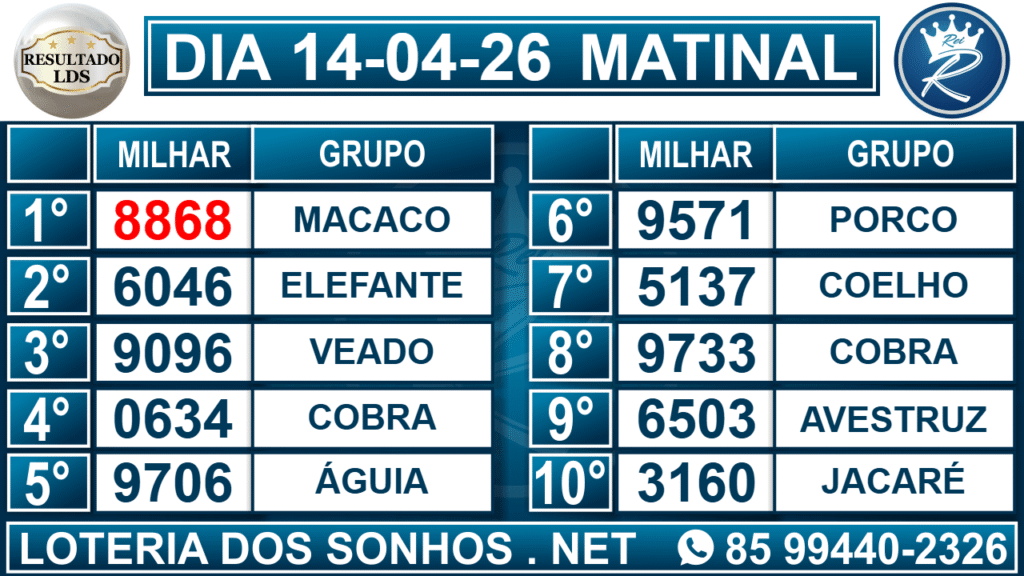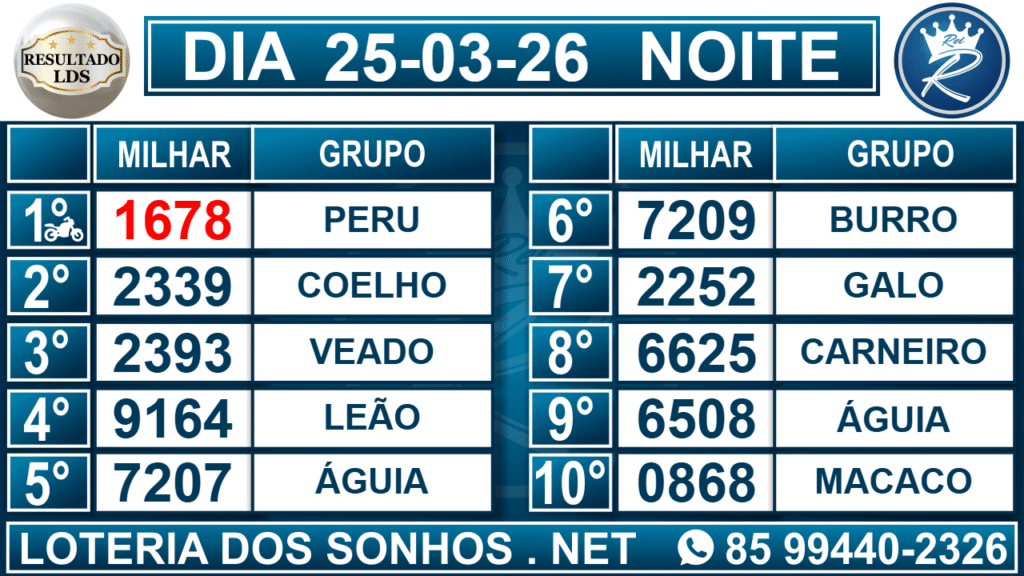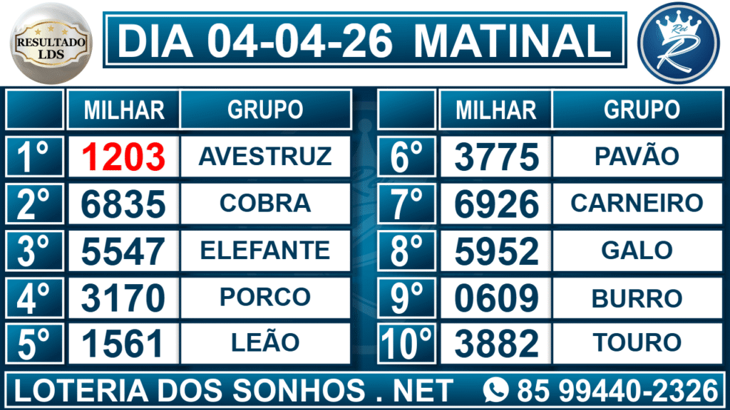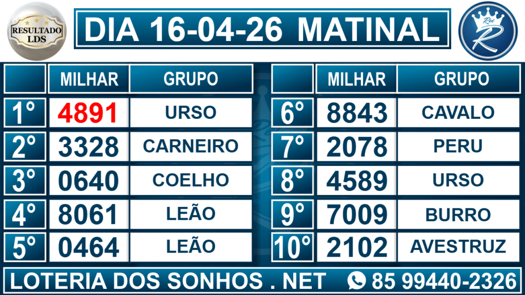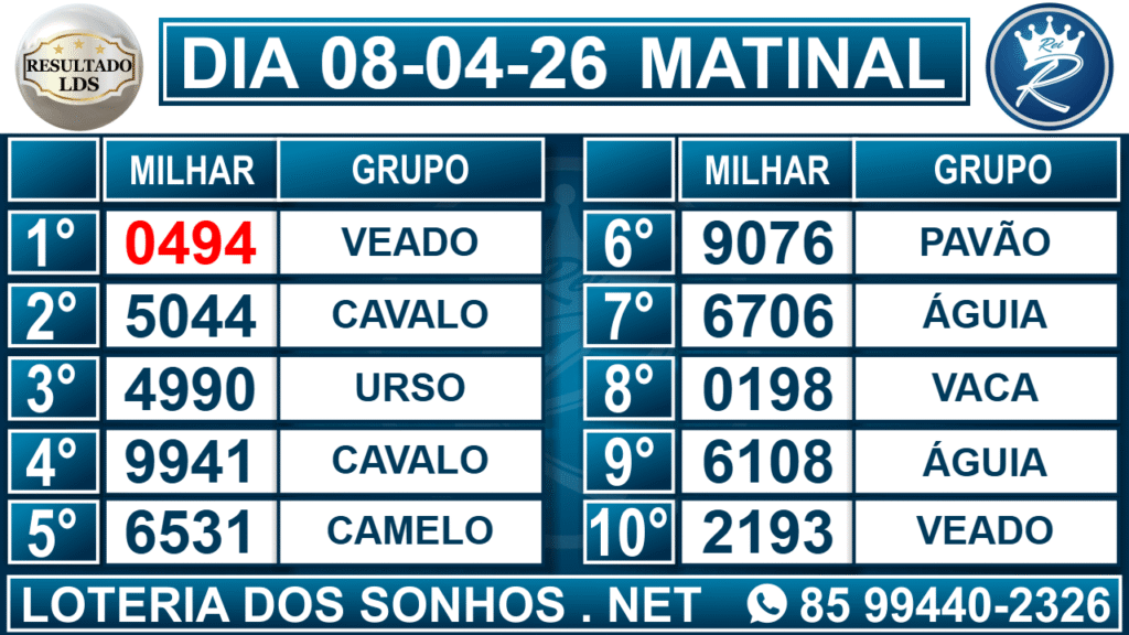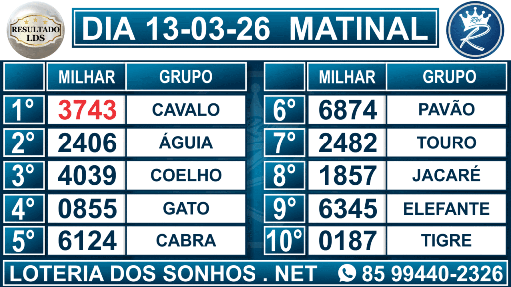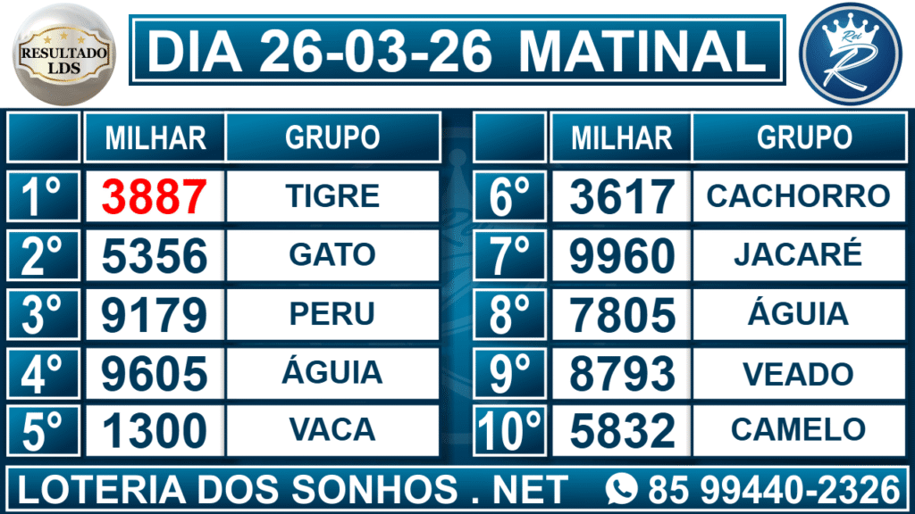 Veja aqui todos os resultados sempre atualizados, o nosso site é o primeiro a postar o resultado da Loteria dos Sonhos.