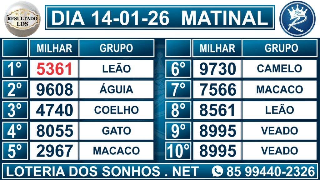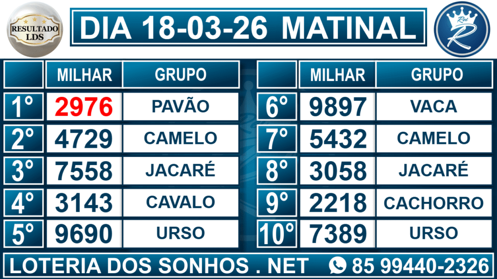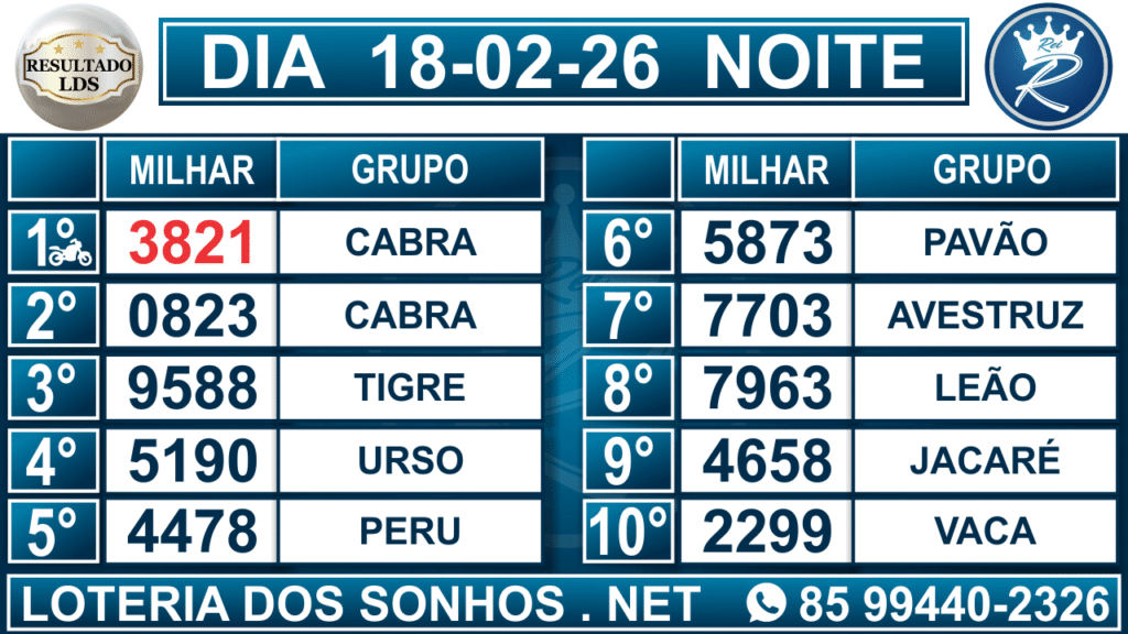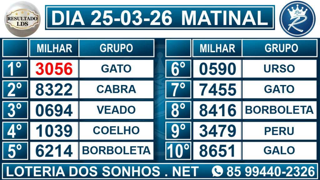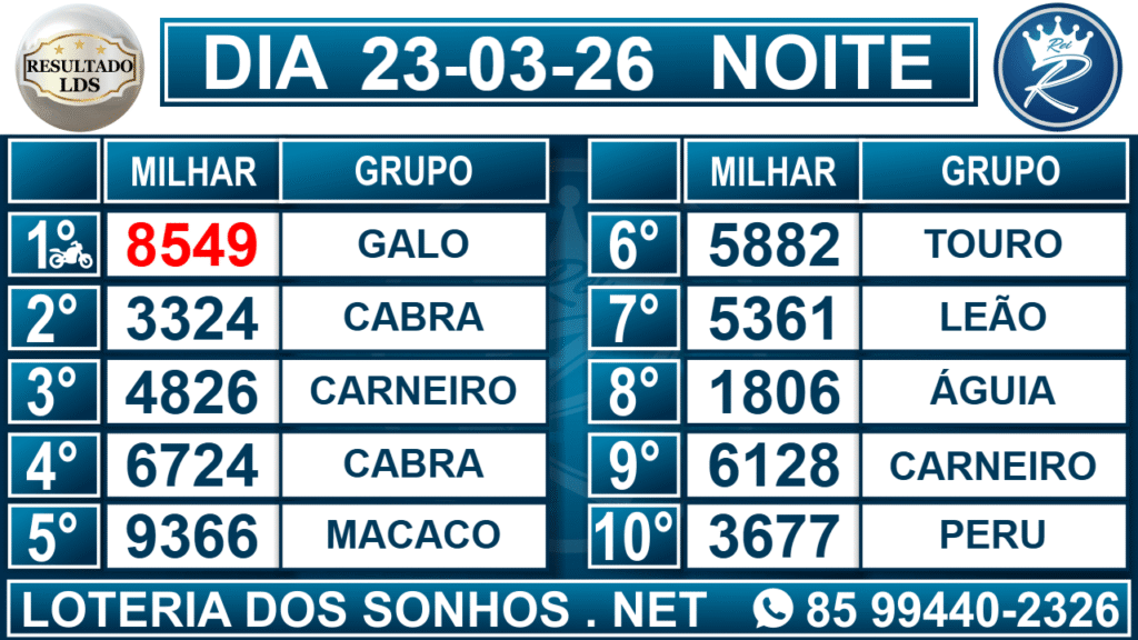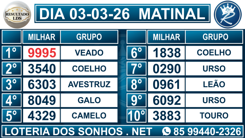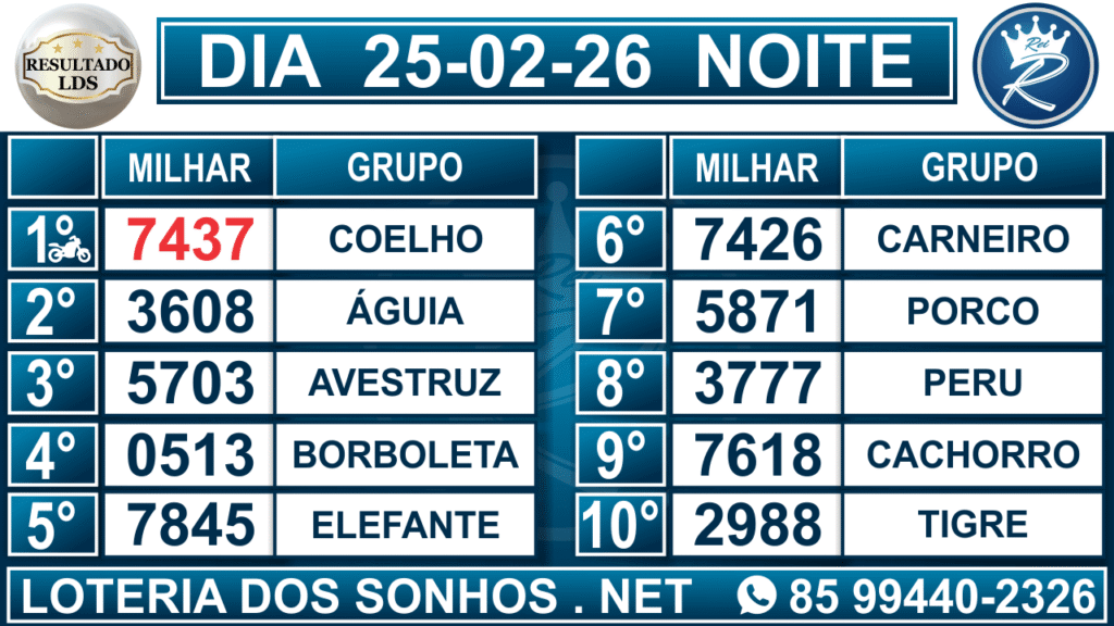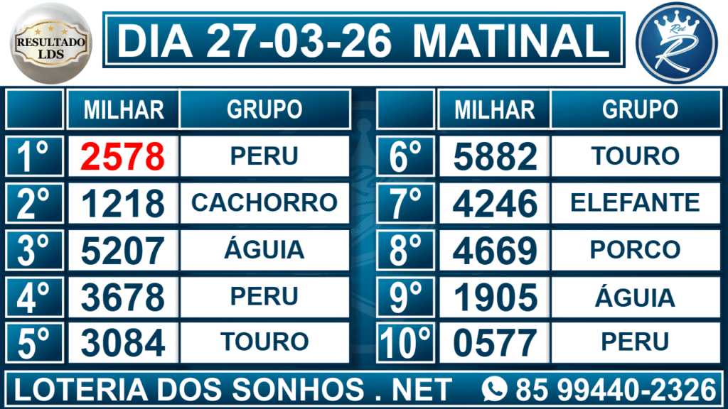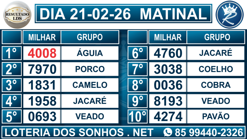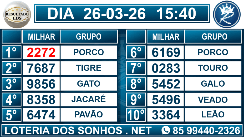 Veja aqui todos os resultados sempre atualizados, o nosso site é o primeiro a postar o resultado da Loteria dos Sonhos.