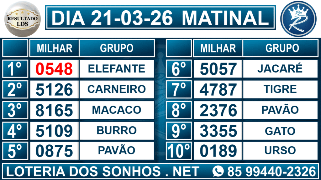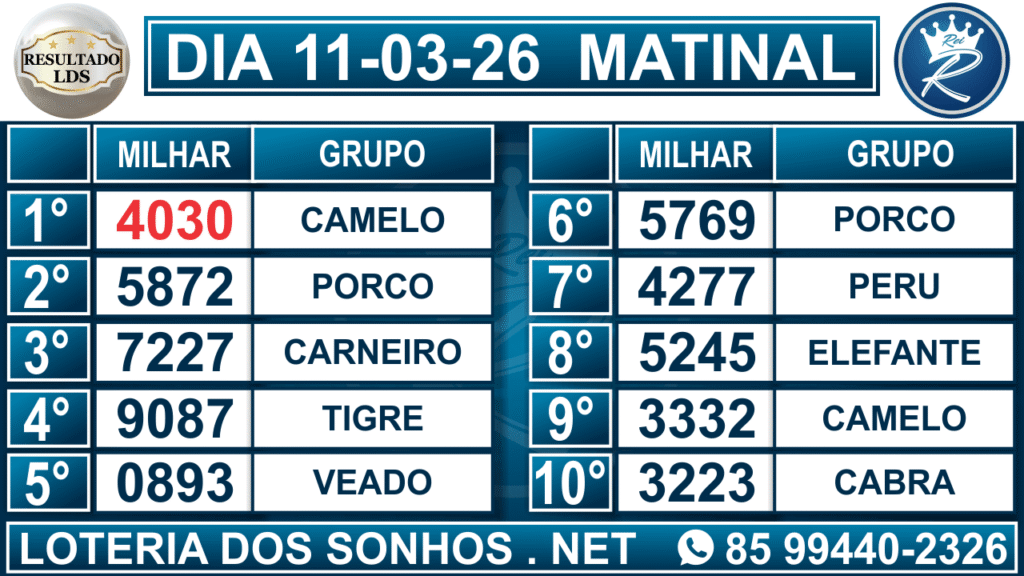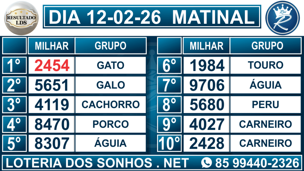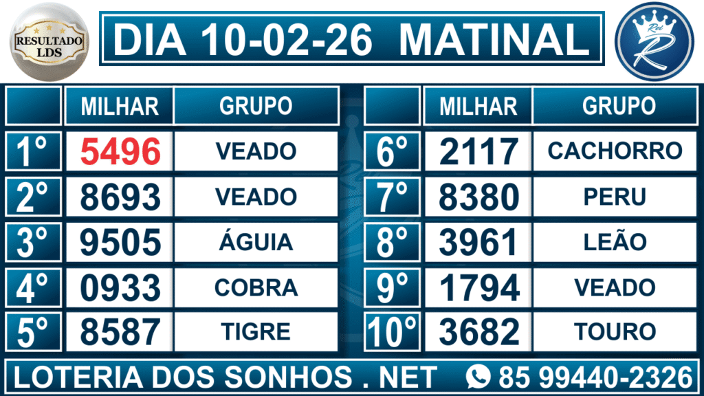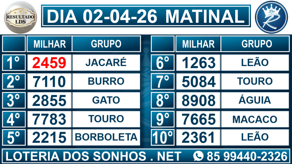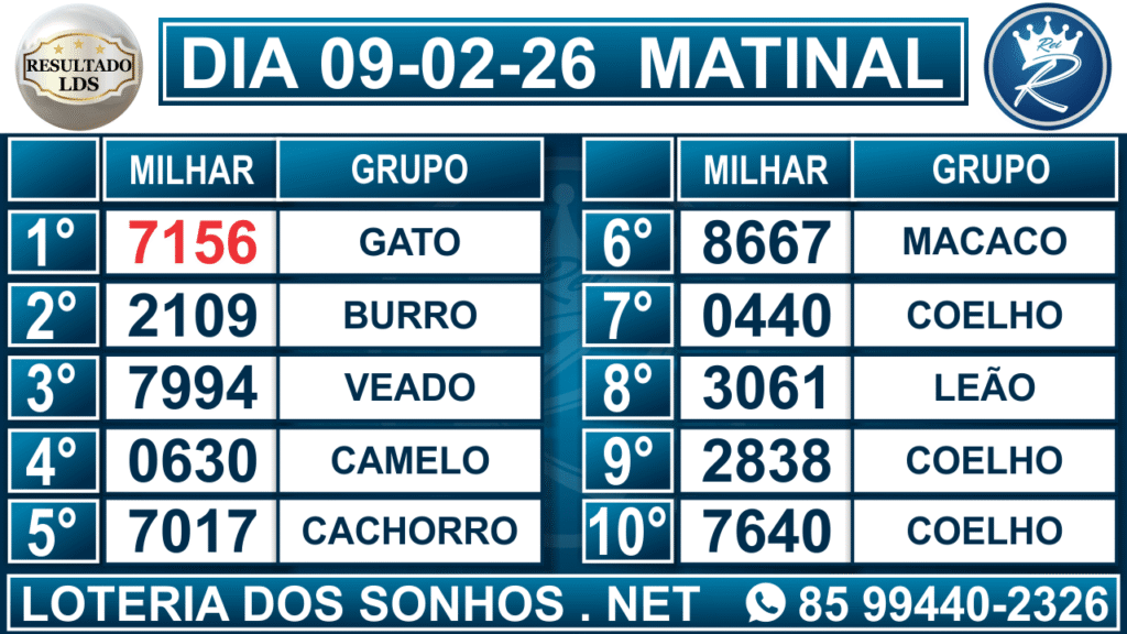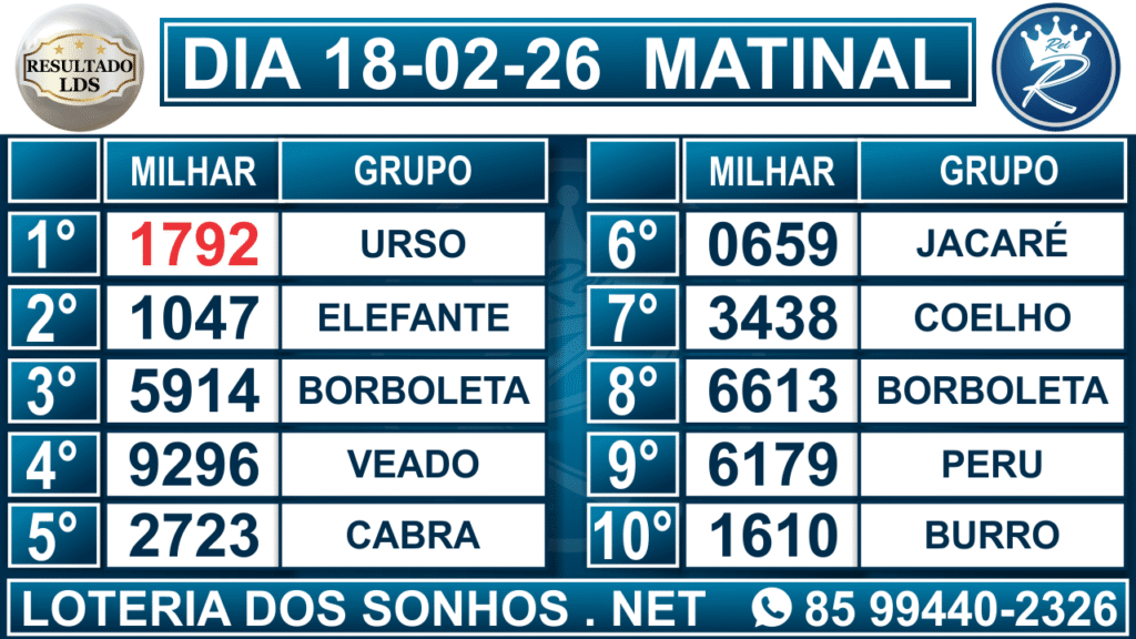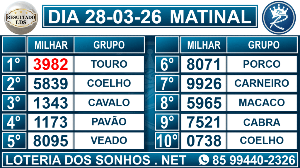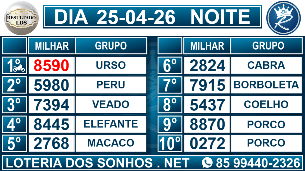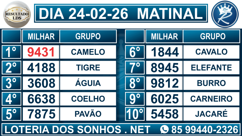 Veja aqui todos os resultados sempre atualizados, o nosso site é o primeiro a postar o resultado da Loteria dos Sonhos.