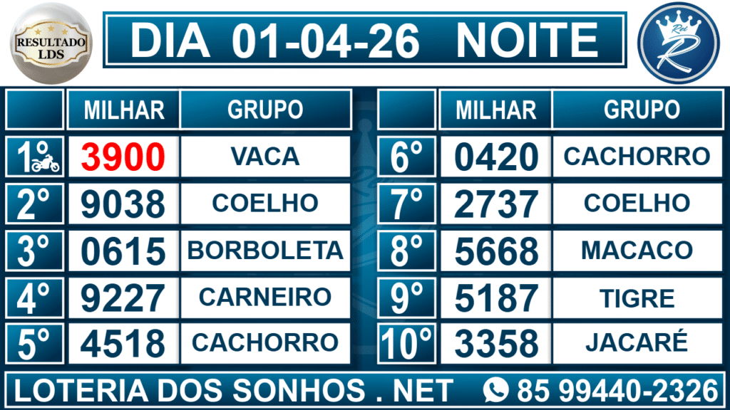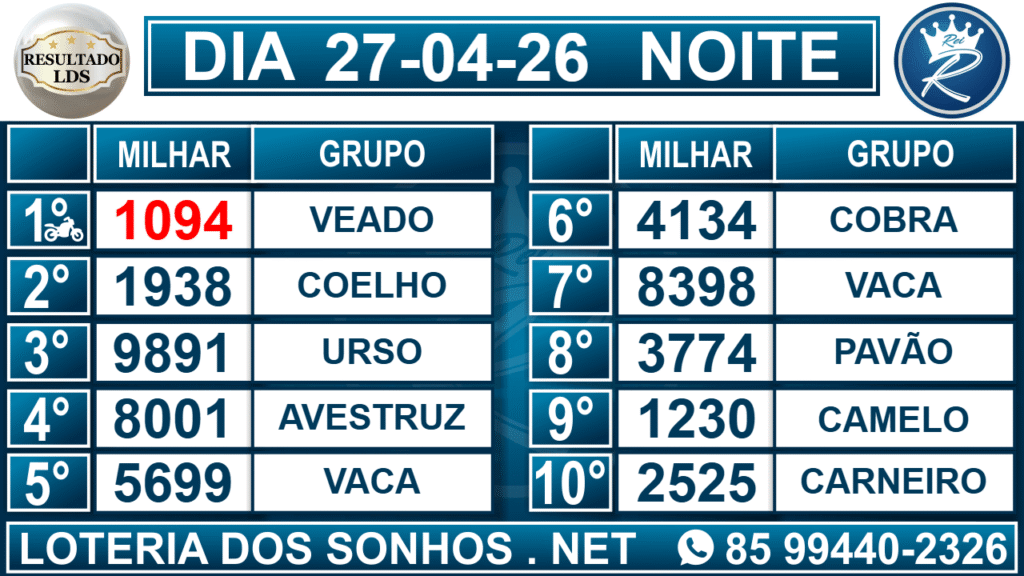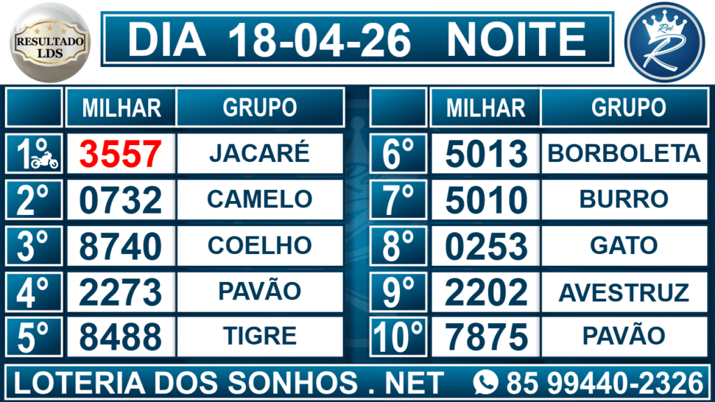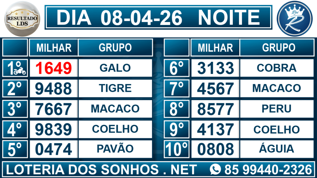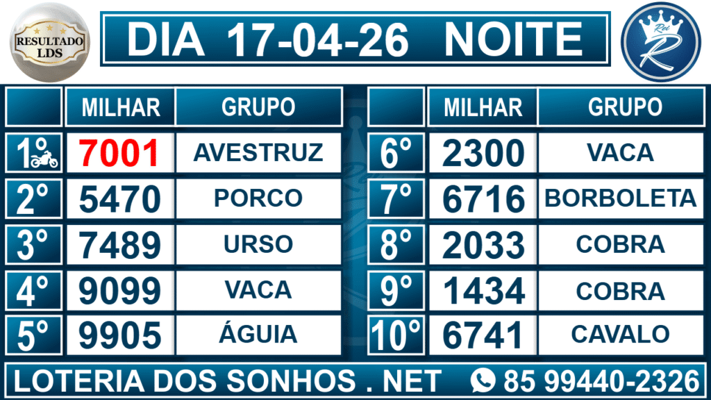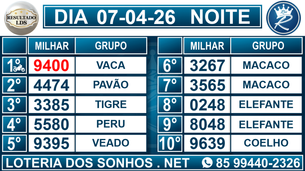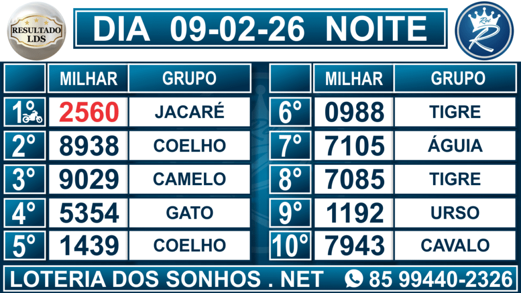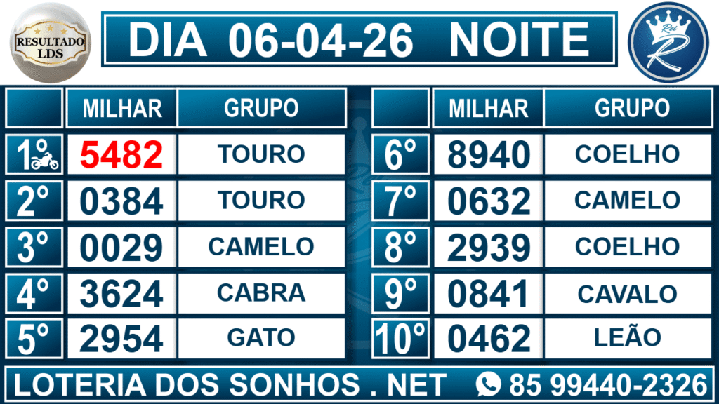 Loteria dos Sonhos Resultado Noite
