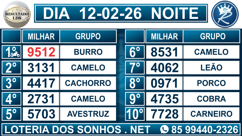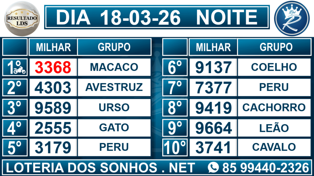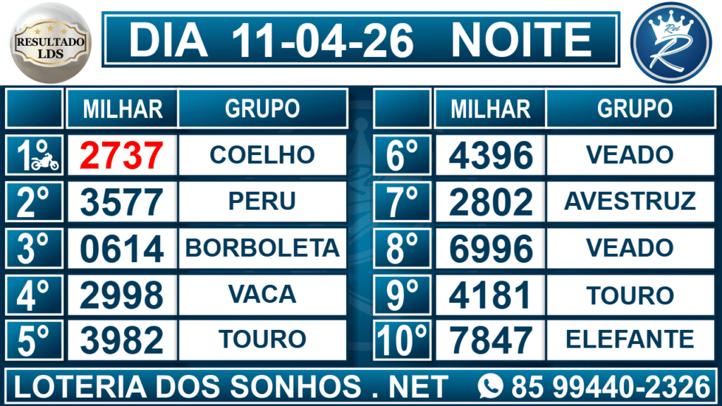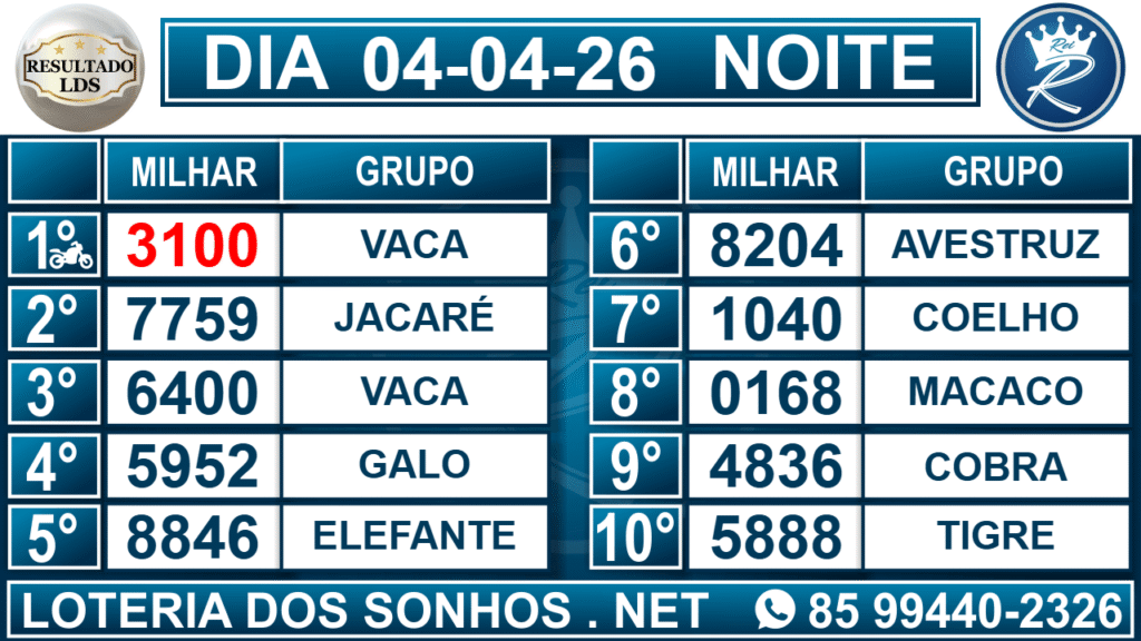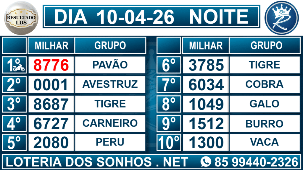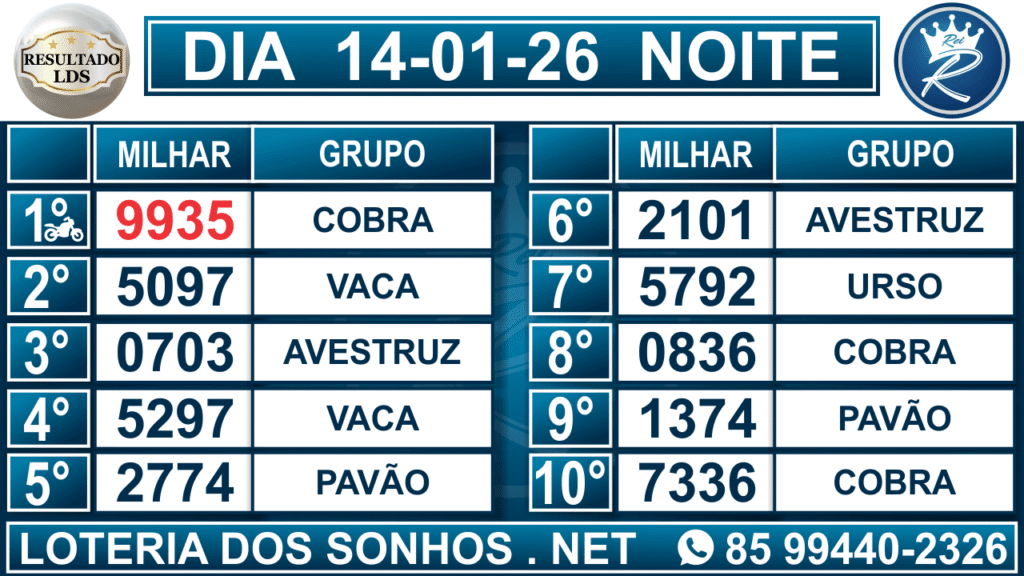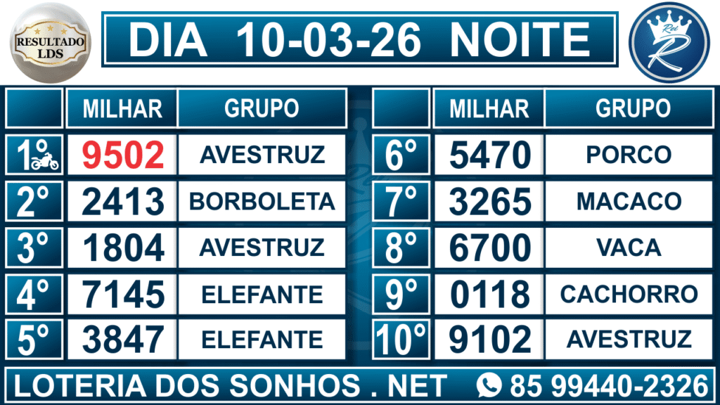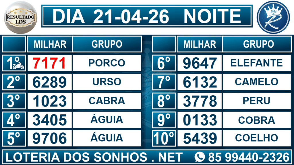 Loteria dos Sonhos Resultado Noite