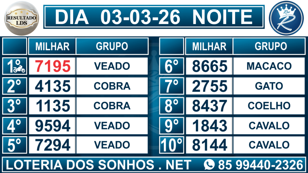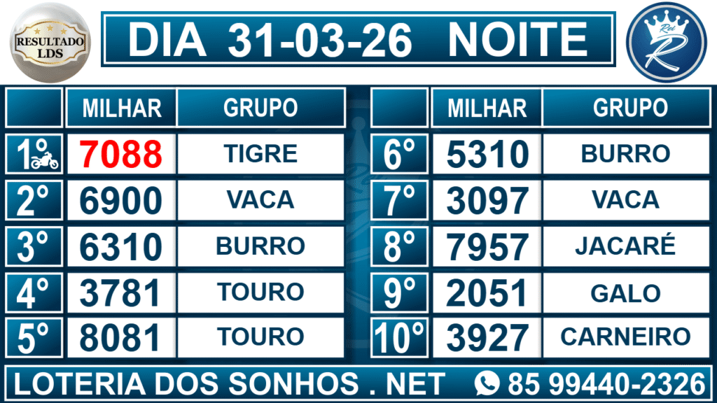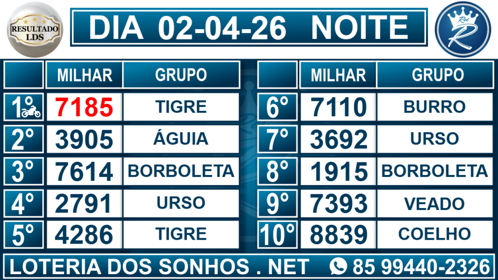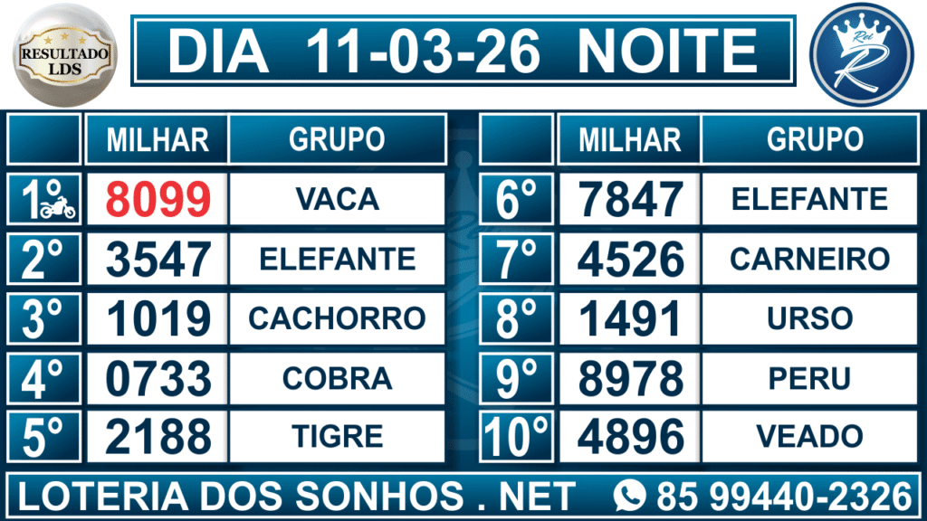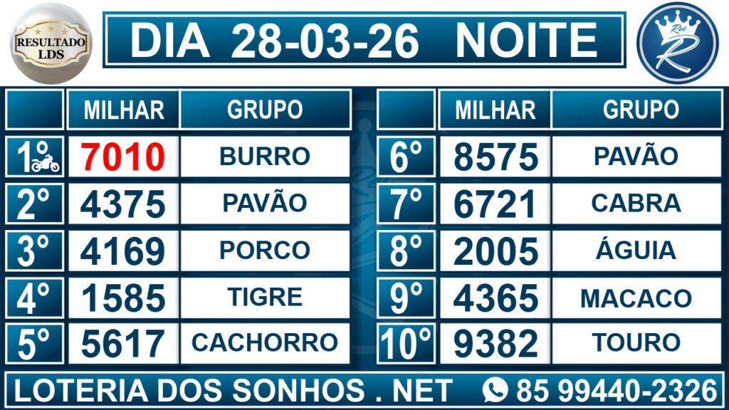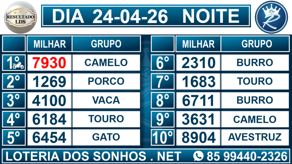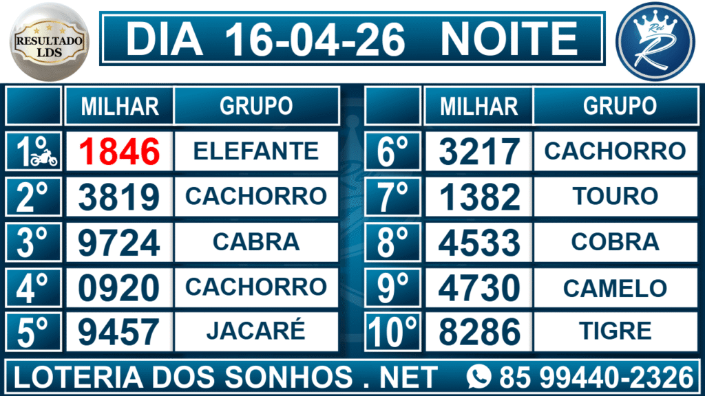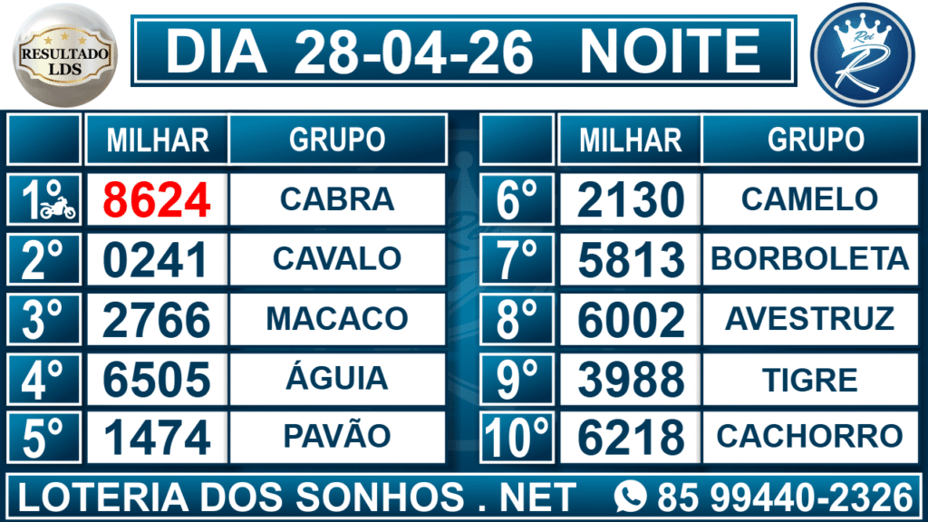 Loteria dos Sonhos Resultado Noite