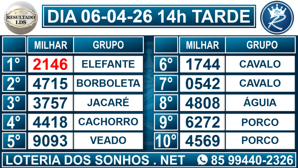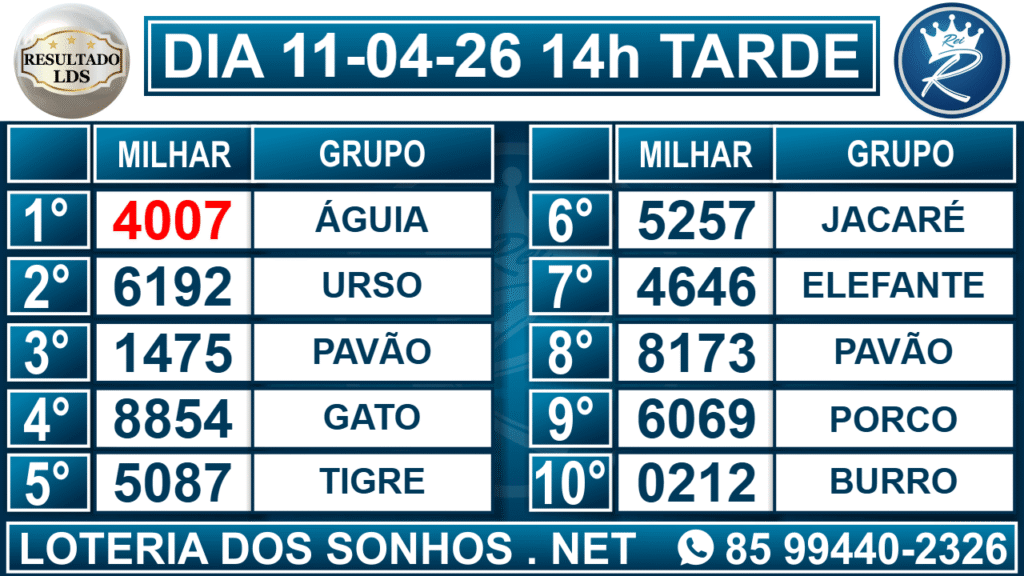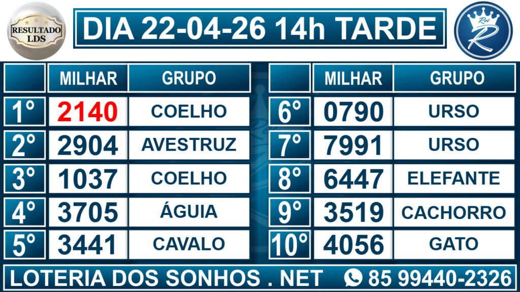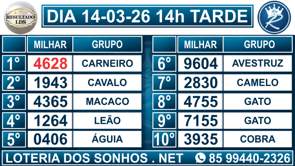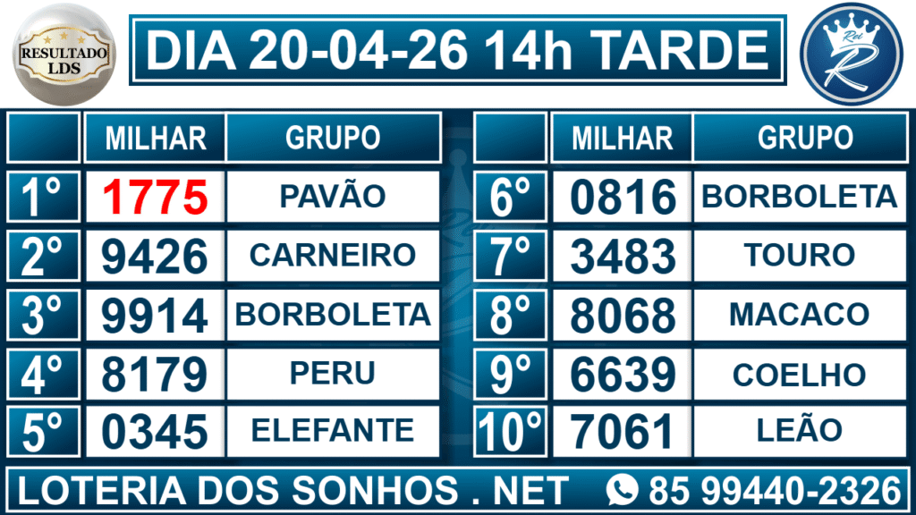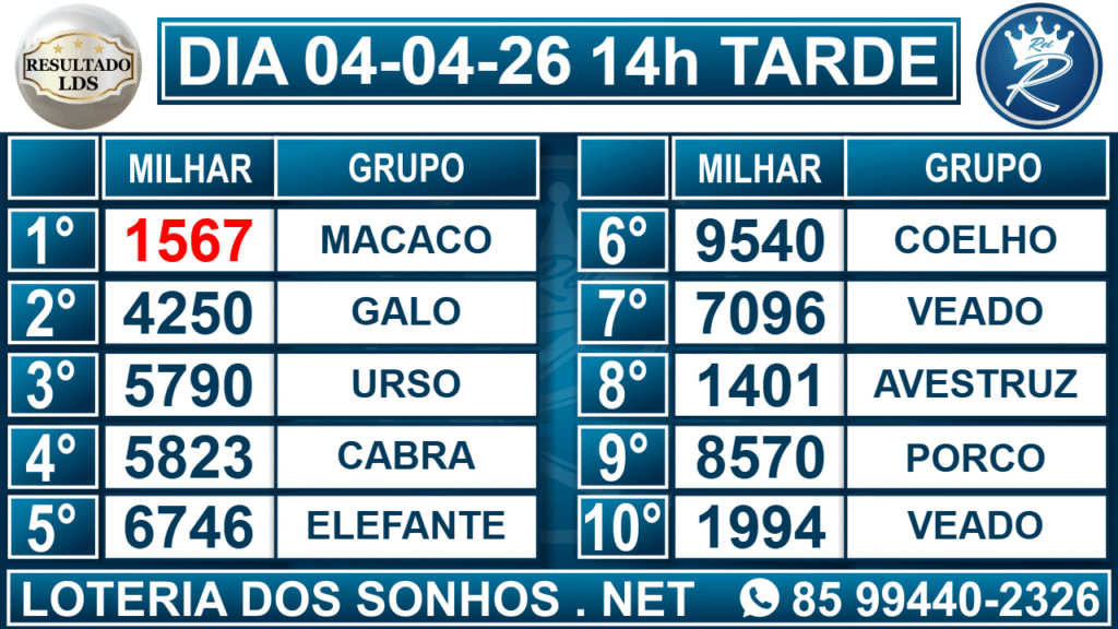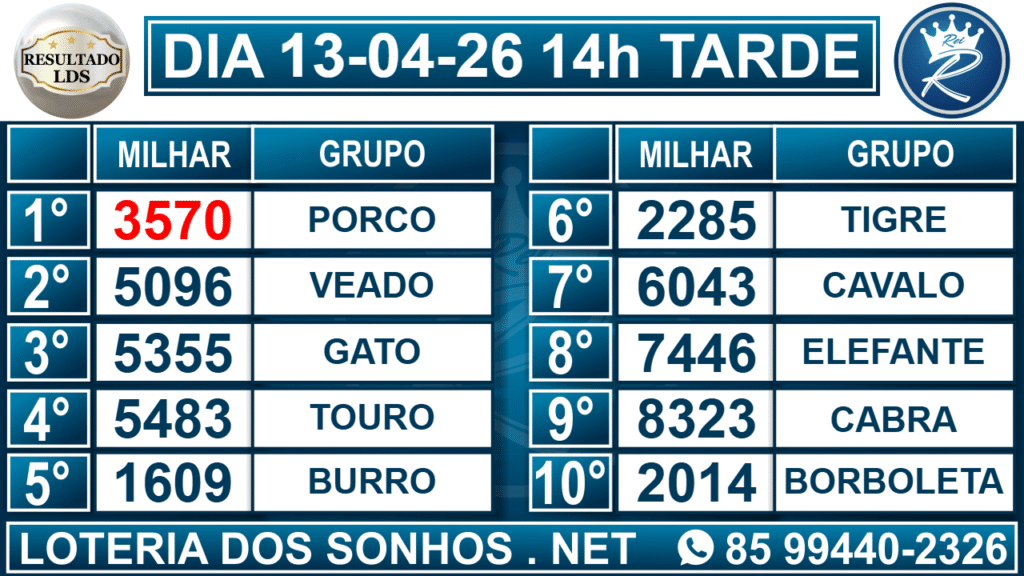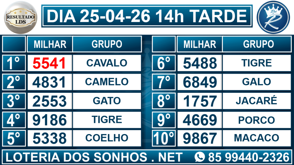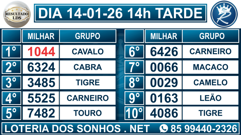 Resultado das 14h – Tarde