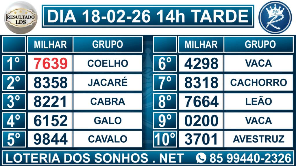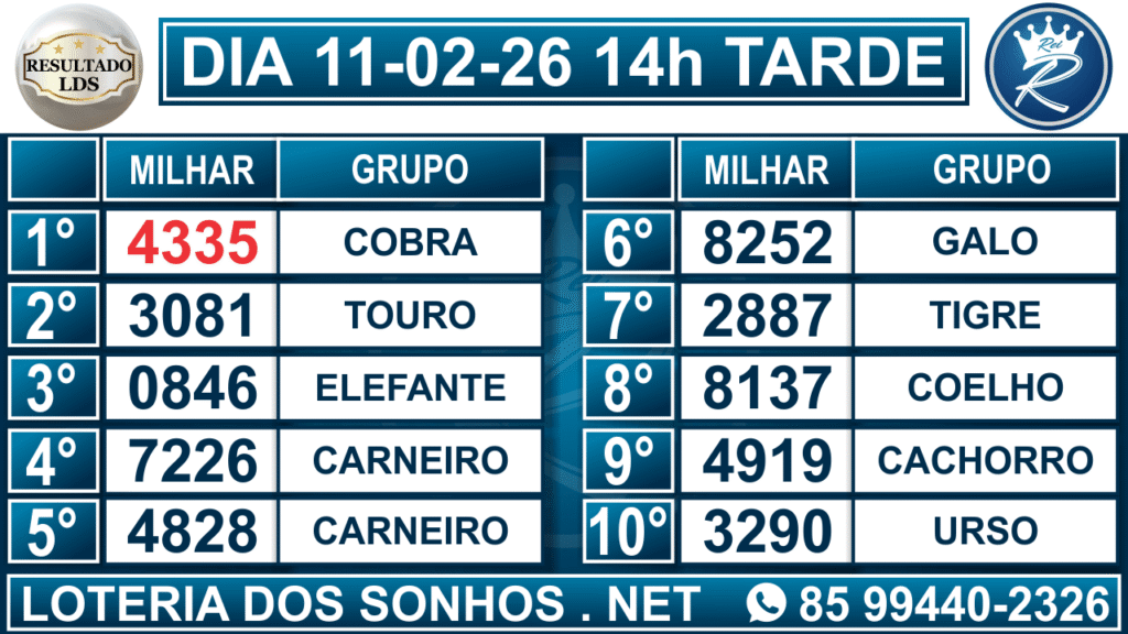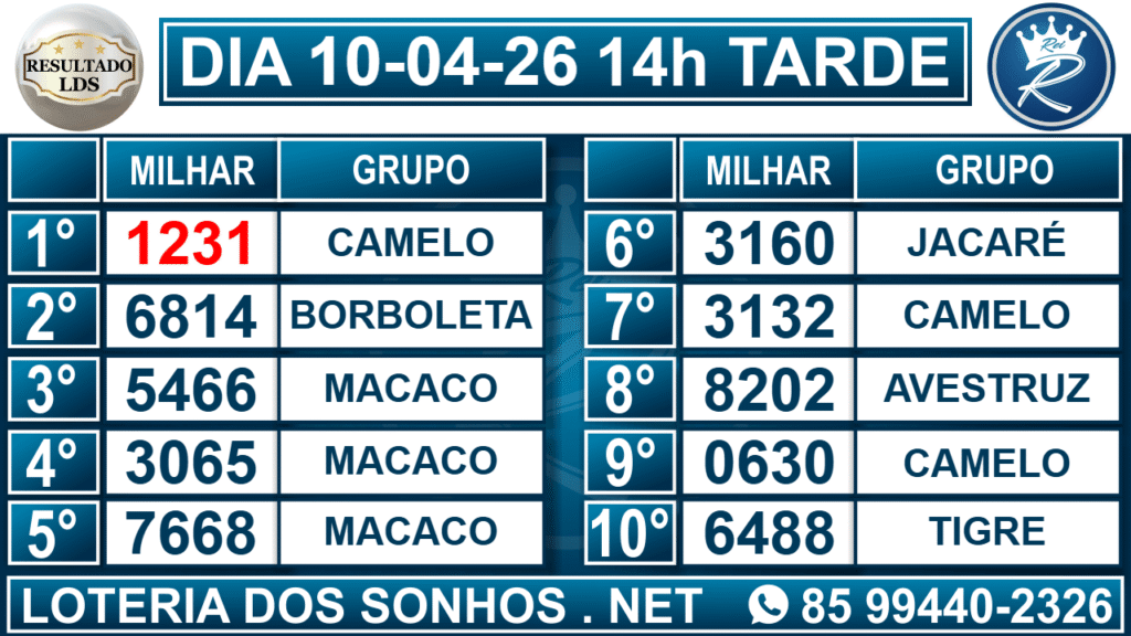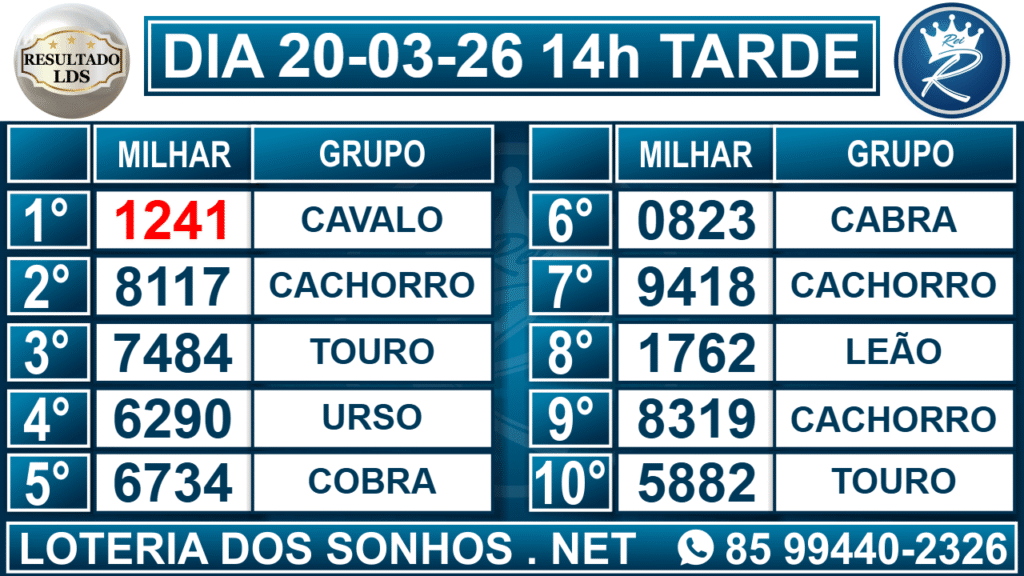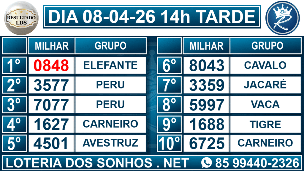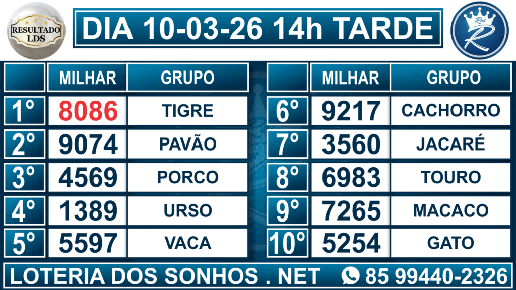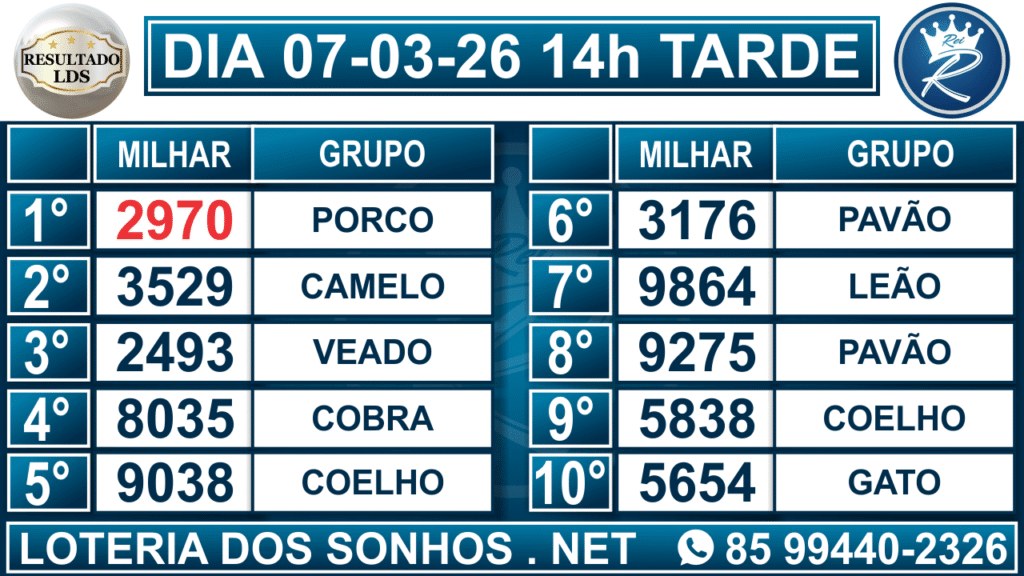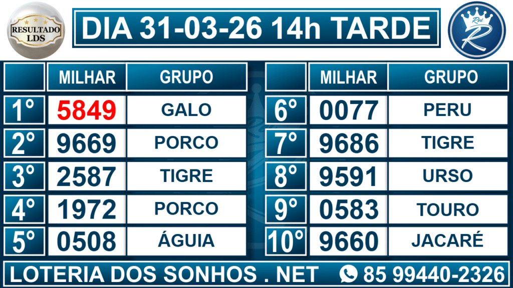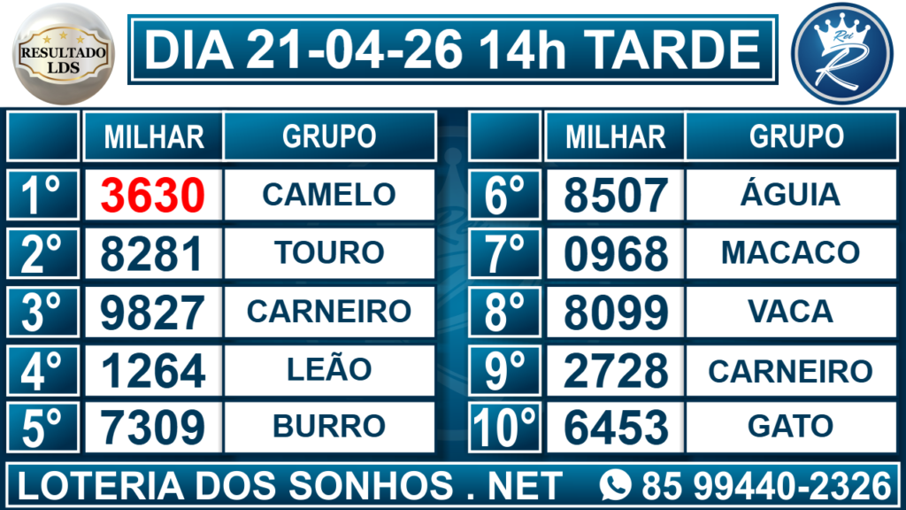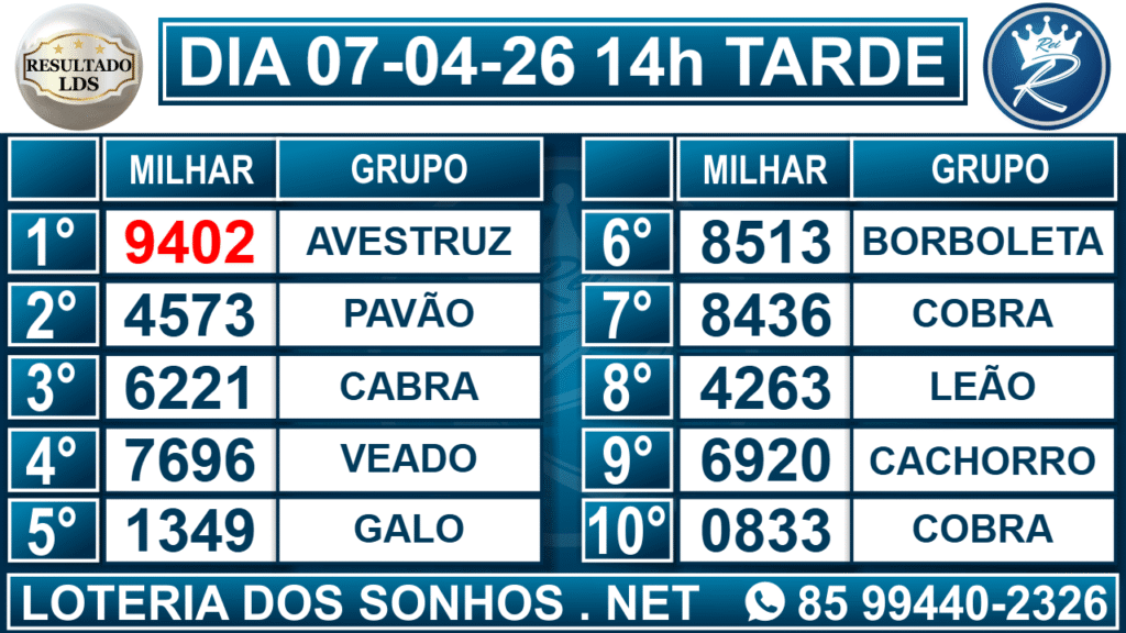 Resultado das 14h – Tarde