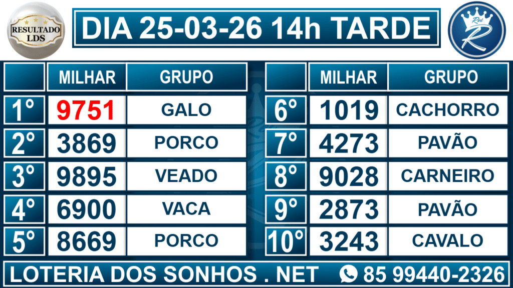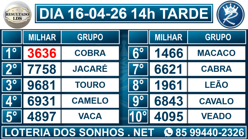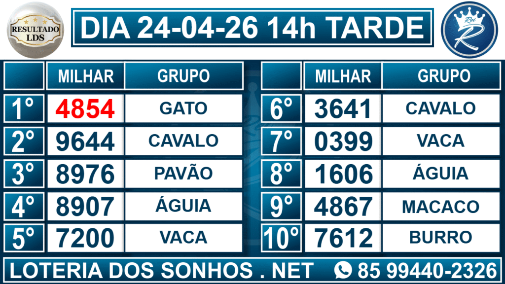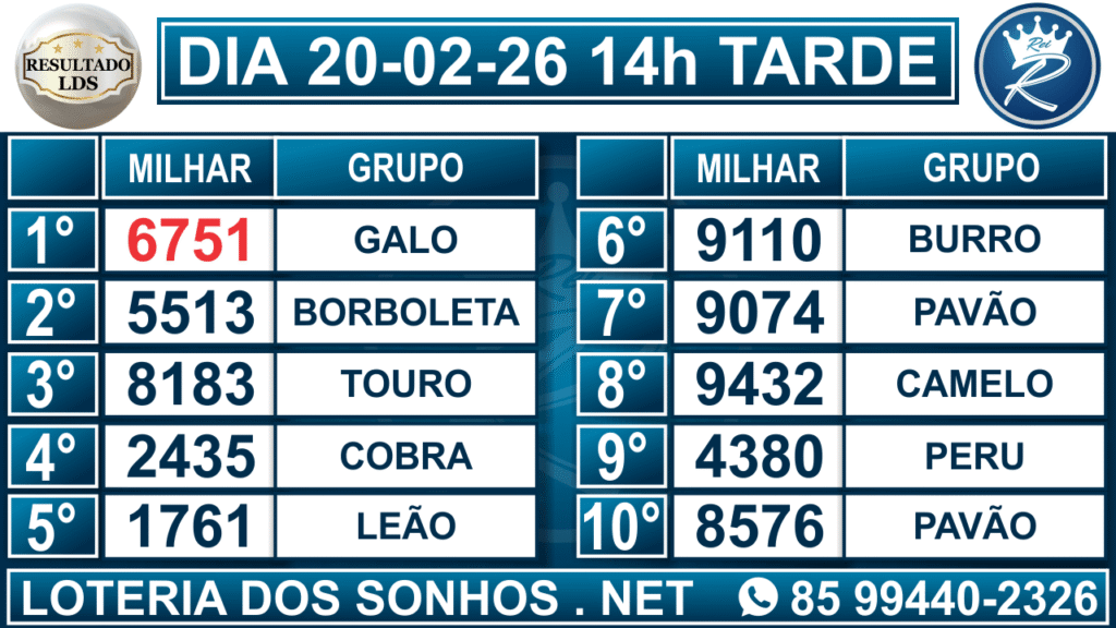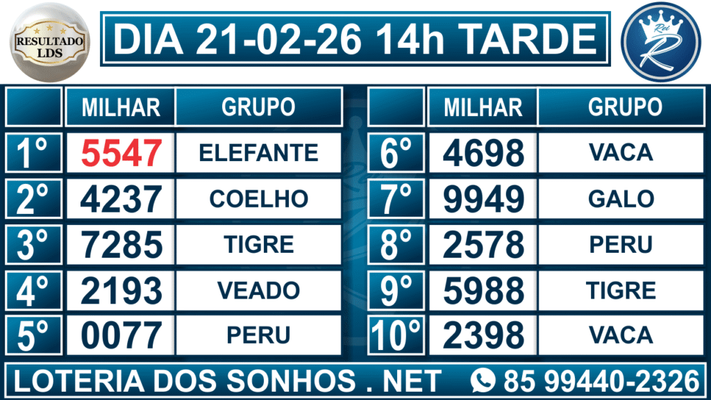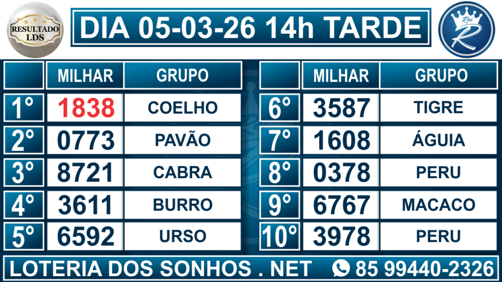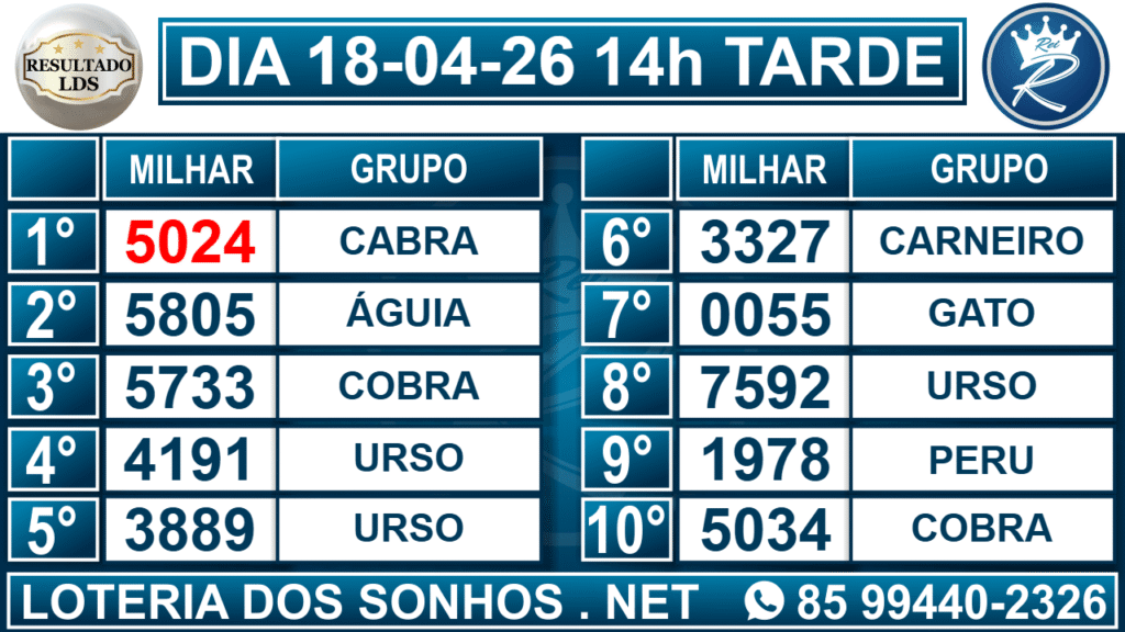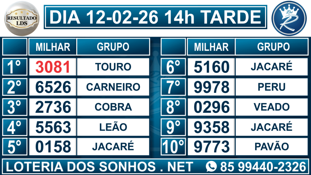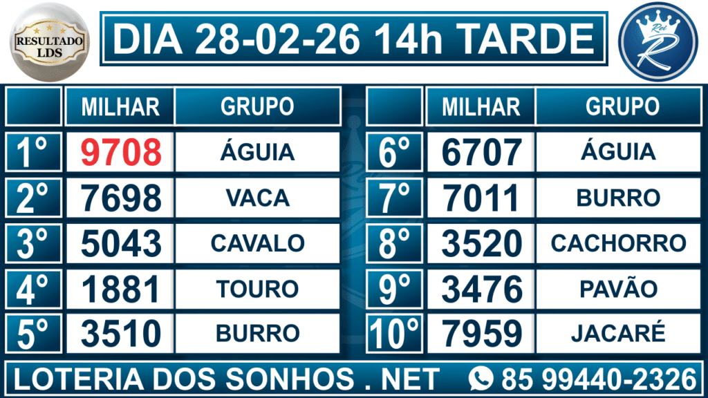 Resultado das 14h – Tarde