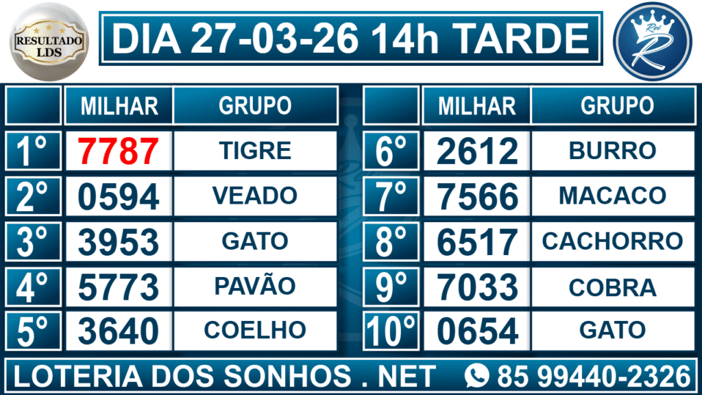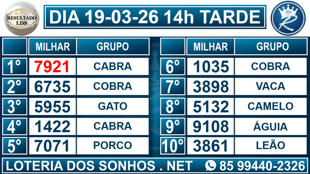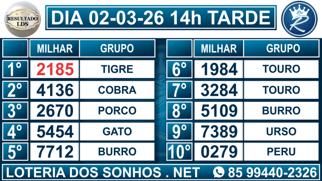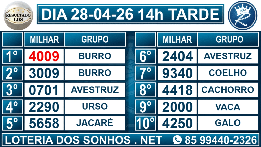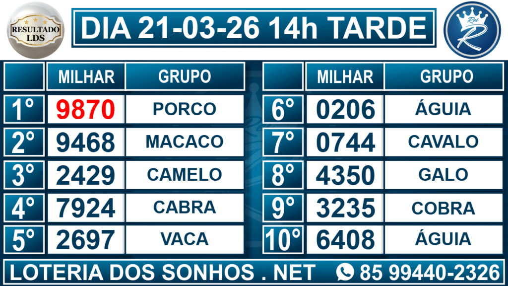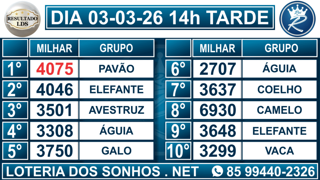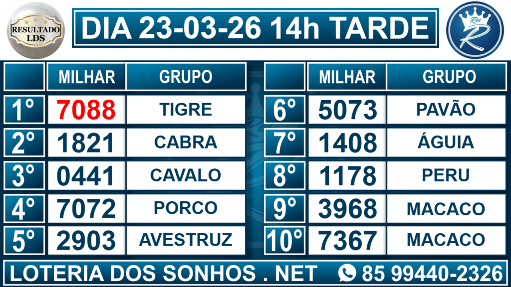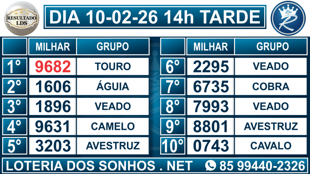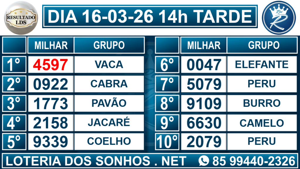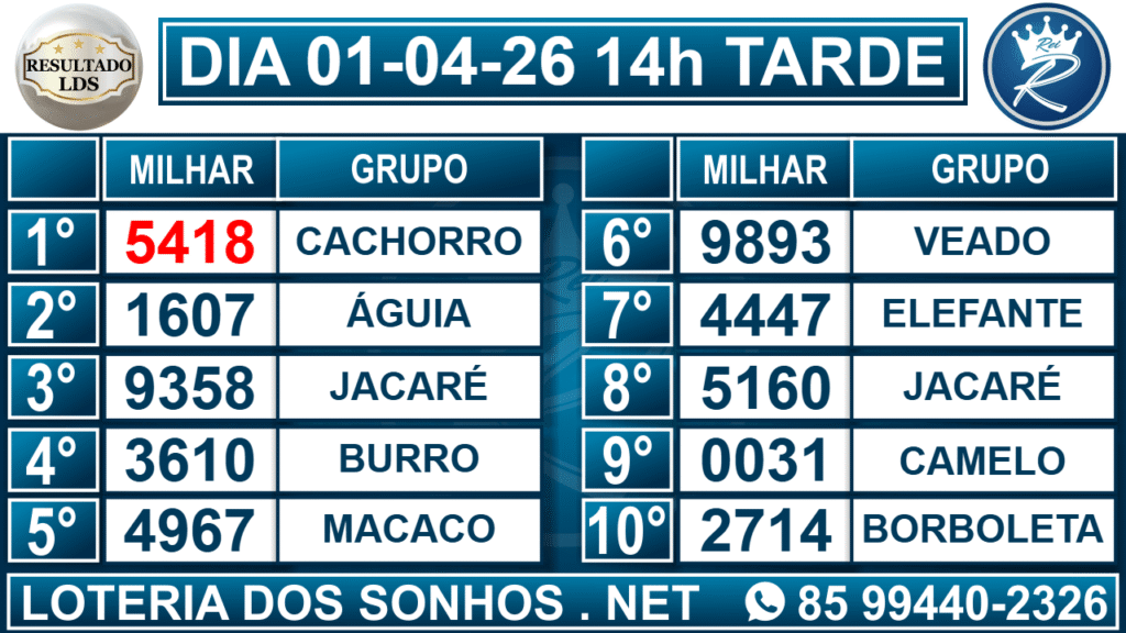 Resultado das 14h – Tarde