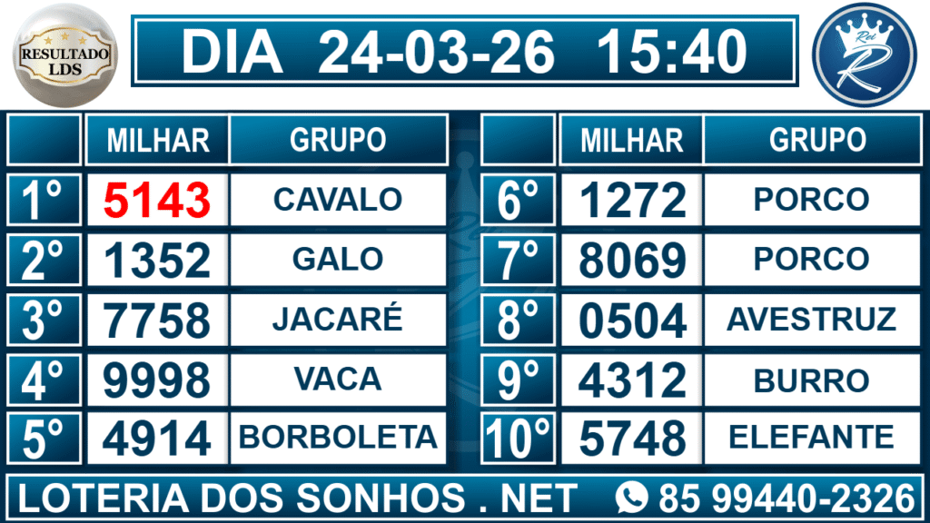 Loteria dos Sonhos – Resultado da Primeira Segunda e Terceira Extração