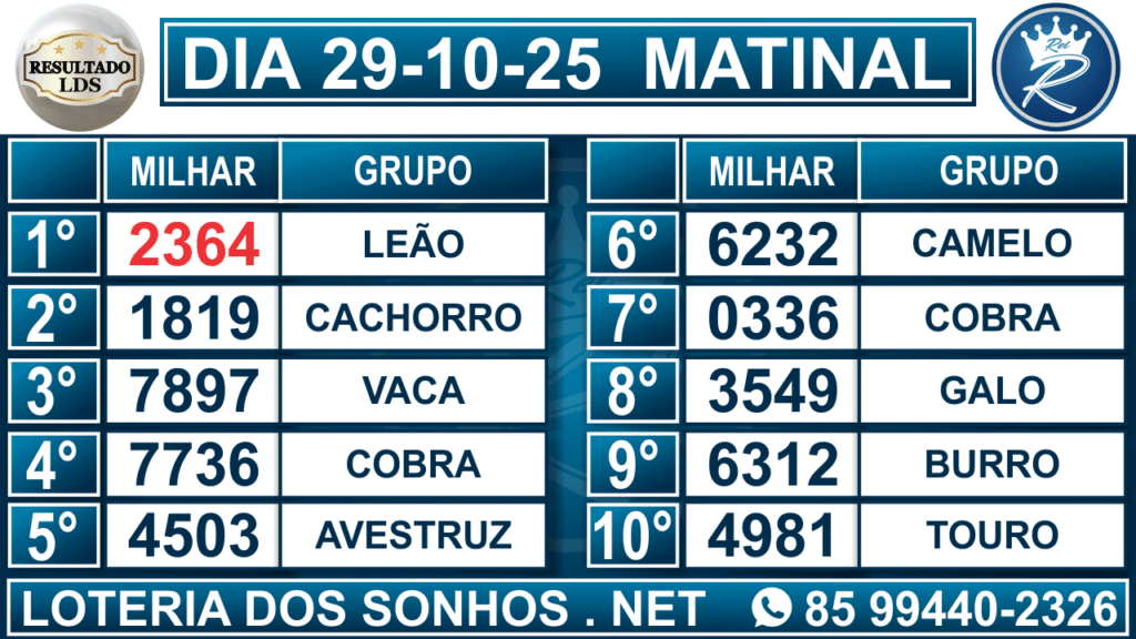 O nosso site é o primeiro a postar o resultado são quatro resultados ao dia, o primeiro resultado acontece às 11:00 o segundo às 14:00 e o terceiro às 15:40 e o quarto e último as 19:45.