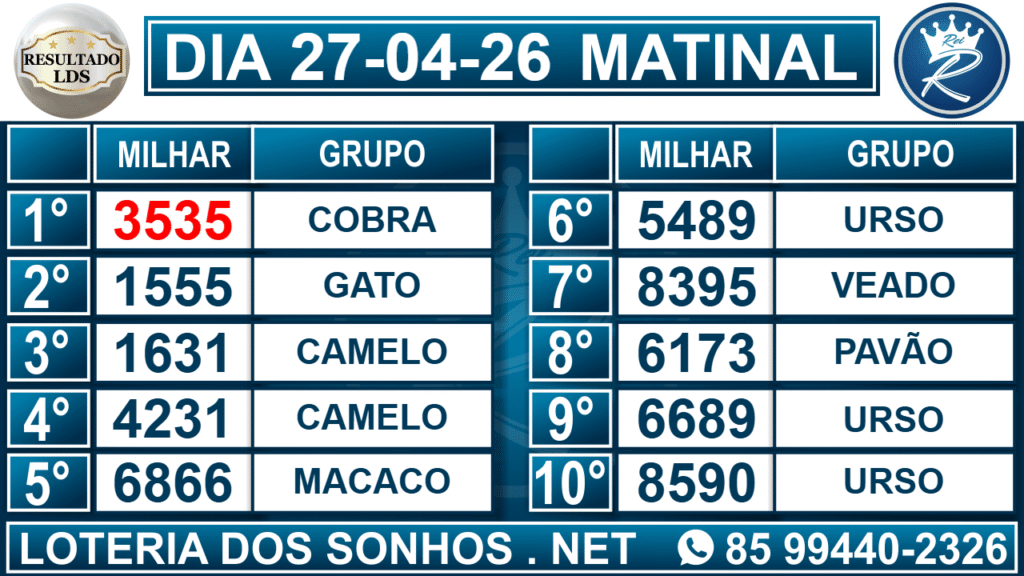 Primeiramente o Site LOTERIADOSSONHOS.NET, é um Site que apenas informa aos seus Leitores todos os resultados dos sorteios da LOTECE, e não tem vínculos algum com quem opera as devidas atividades dos jogos.