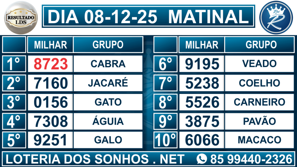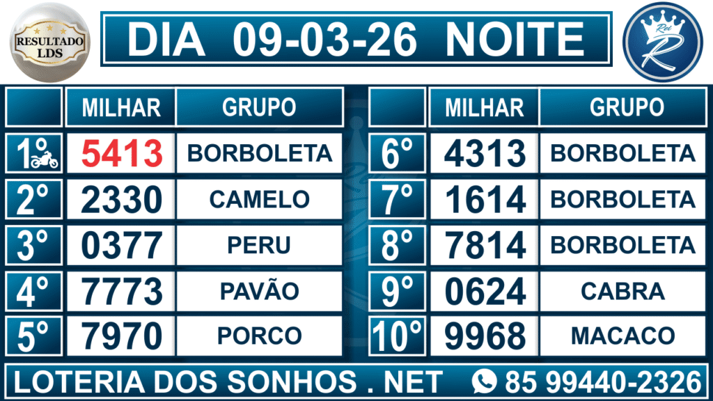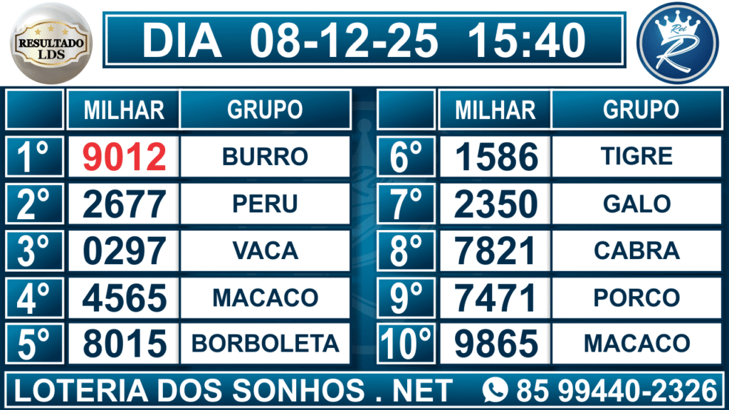 Loteria dos Sonhos Ao Vivo – Resultado da Primeira Segunda e Terceira Extração